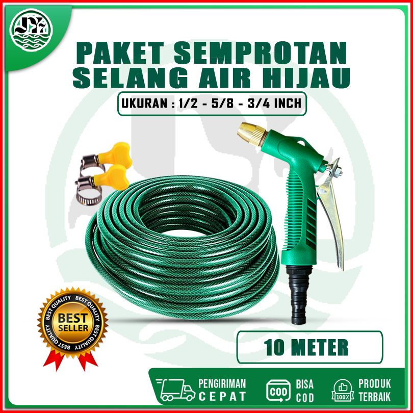 Sepaket Semprotan Selang Air Hose Nozzle 10 Meter Hijau Anti Lumut 1 2 5 8 3 4 Inch Terlaris