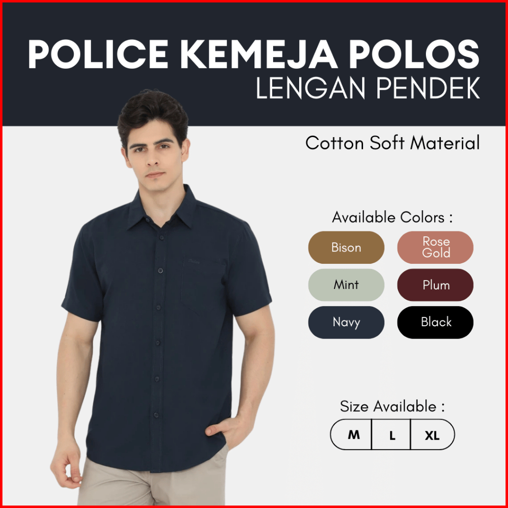 Police Kemeja Polos Basic Cotton Soft Regular Fit Lengan Pendek Pria