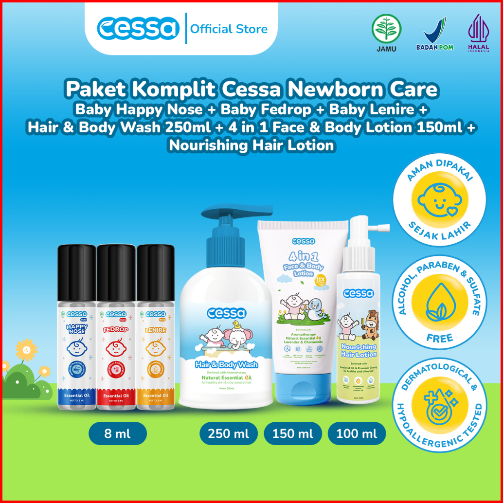 Paket Komplit Cessa Newborn Care - Baby Happy Nose Baby Fedrop Baby Lenire Hair Body Wash 250ml 4 In 1 Face Body Lotion