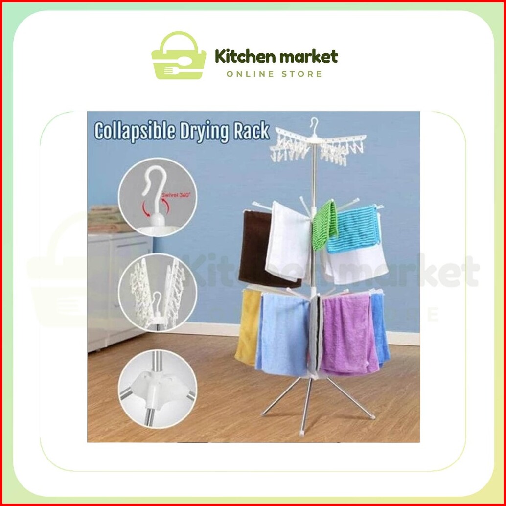 Km Jemuran Menara Rak Jemuran Baju Bayi Lipat Rak Susun Handuk Foldable Hanger 10 Jari-jari