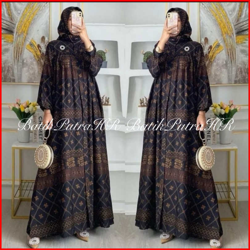 Gamis Jumbo Rayon Premium Motif Etnik Kekinian - Gamis Dress Busui Friendly - Gamis Home Dress