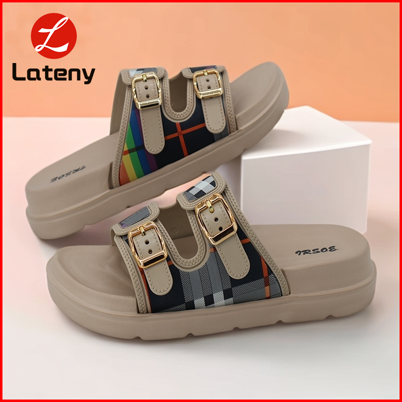 Lateny Sandal Wanita Kekinian Sandal Slop Wanita Dewasa Sandal Slide Wanita Tinggi Anti Slip