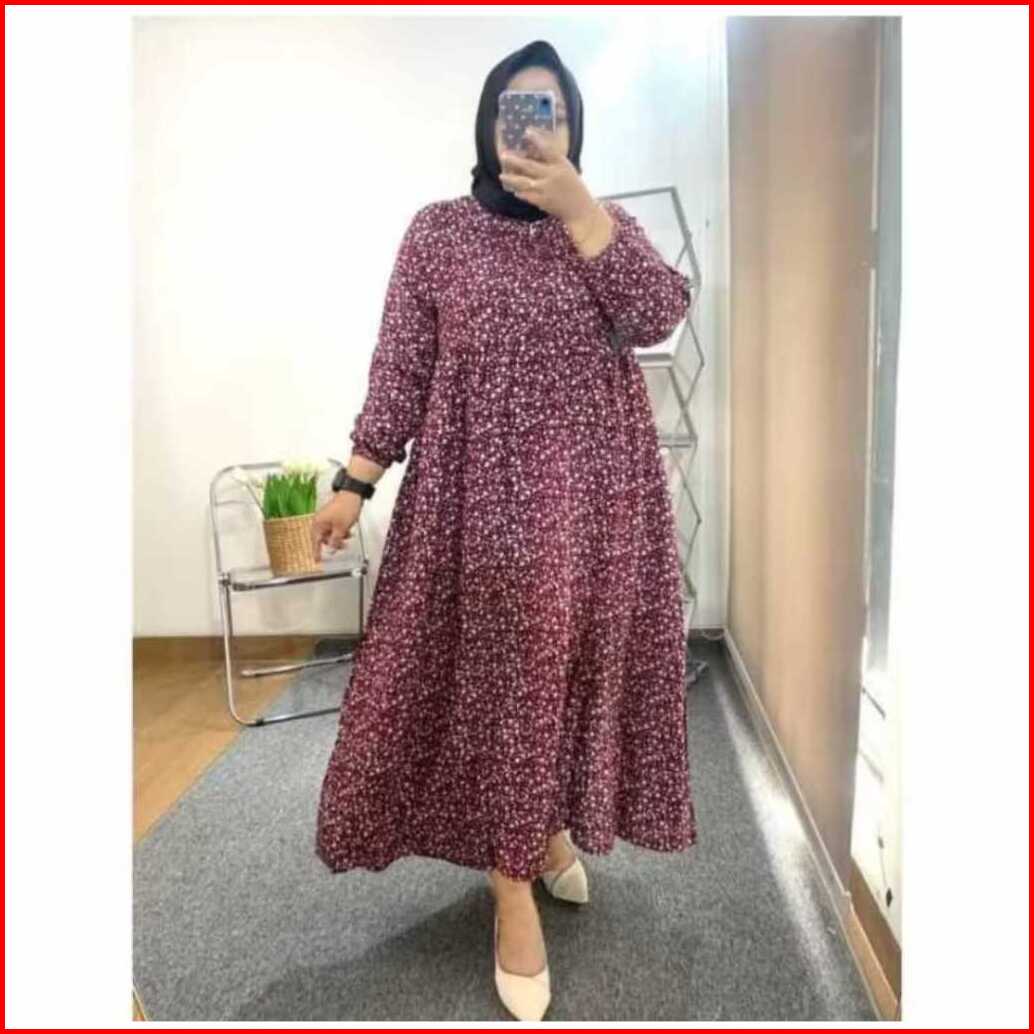 Midi Dress Misni Rayon Premium Jumbo Daster Lengan Panjang Warna Bagus