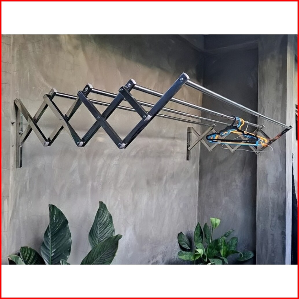 Jemuran Dinding Lipat Jemuran Baju Pakaian Dinding 100cm 160cm-200cm Jemuran Lipat Dinding 3 Batang 4 Batang