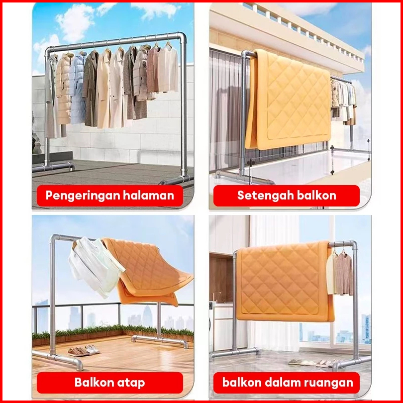 Jemuran Baju Tabung Baja Single 200cm Jemuran Baju Stainless Steel Jemuran Pakaian Minimalis Windproof Hook
