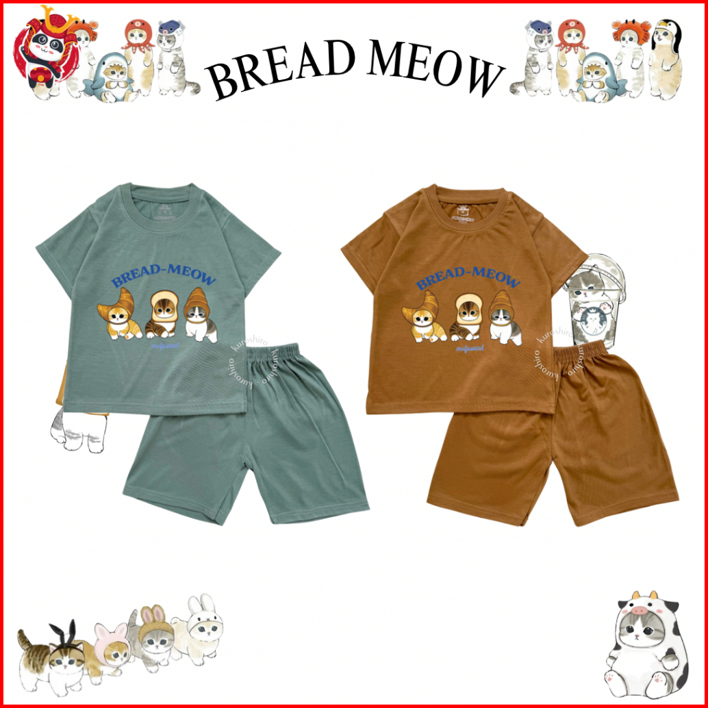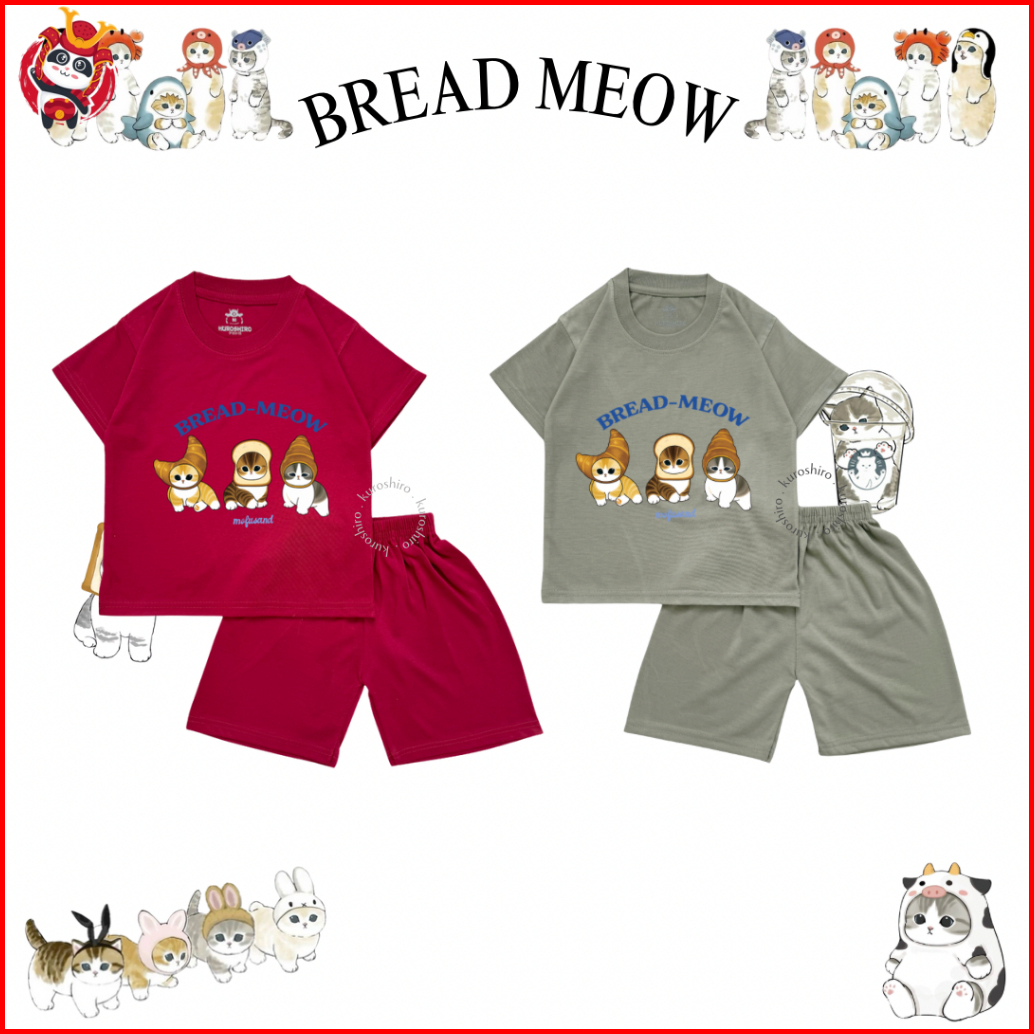 Kuroshiro - Setelan Baju Anak 1-9 Tahun Bread Meow Kaos Anak Perempuan Laki Laki