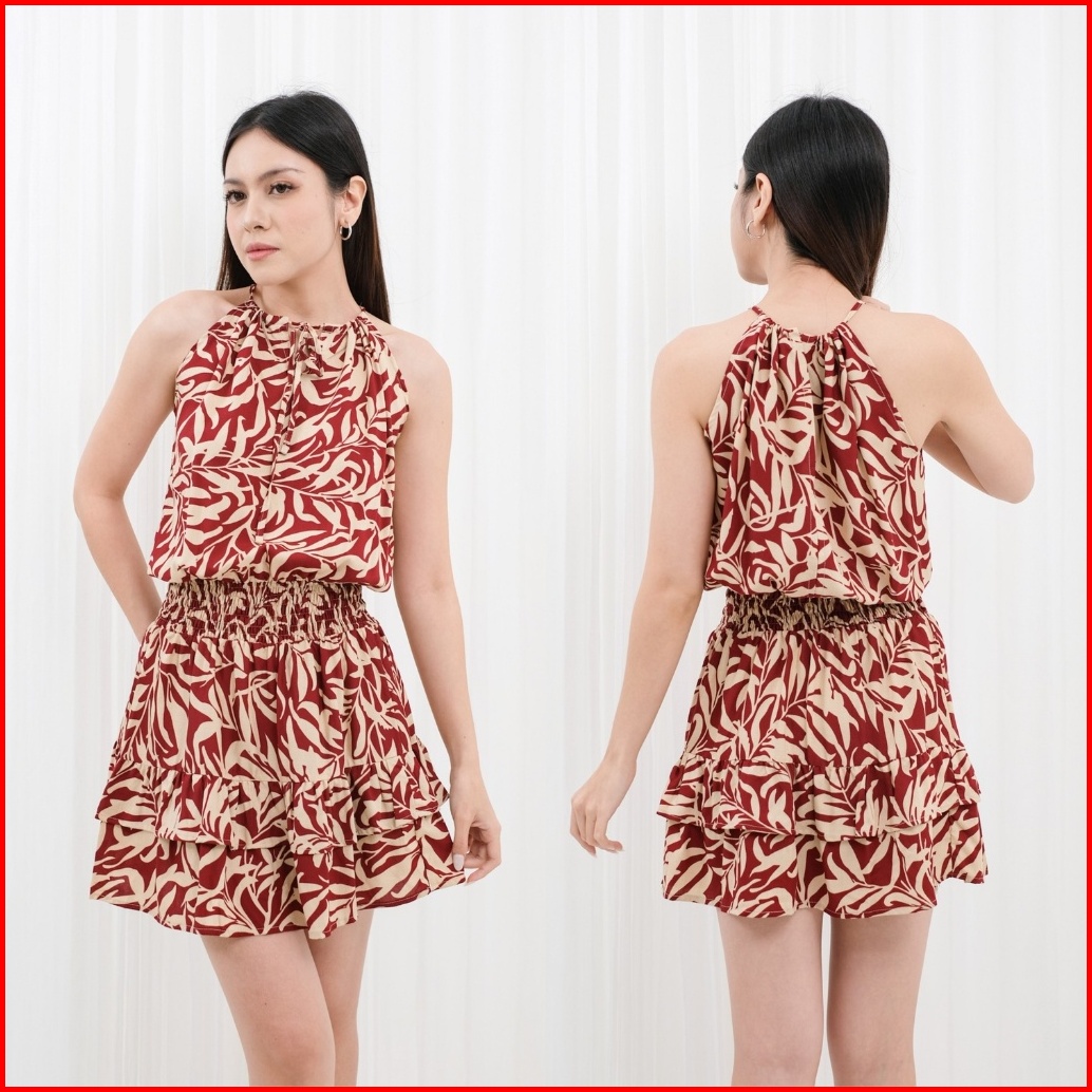 Bee Mini Dress - Mini Dress Wanita Korean Look Beach Outfit Motif Bunga Floral