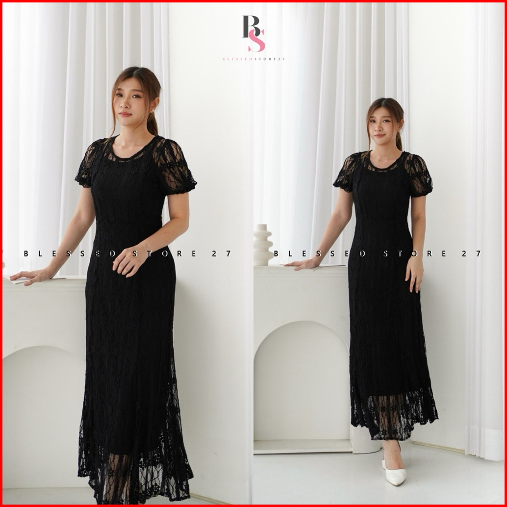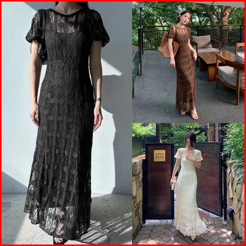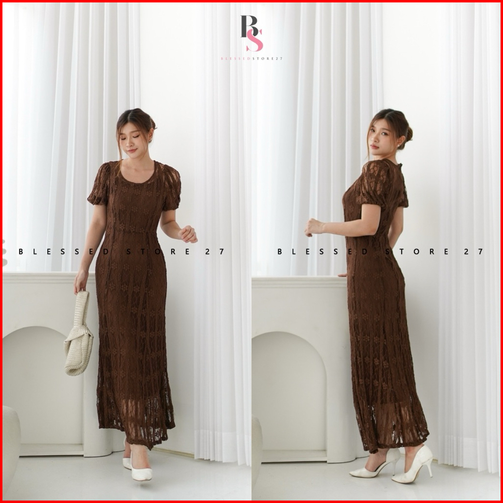 D1692 Aletania Korean Style Vintage Maxi Dress Pantai Polos Brukat Panjang Simple Polos Bodycon