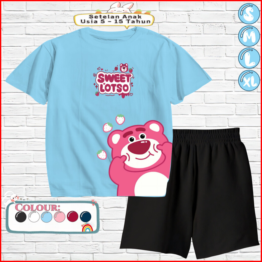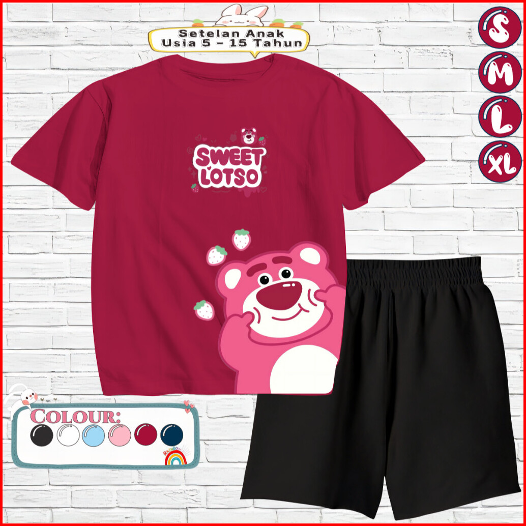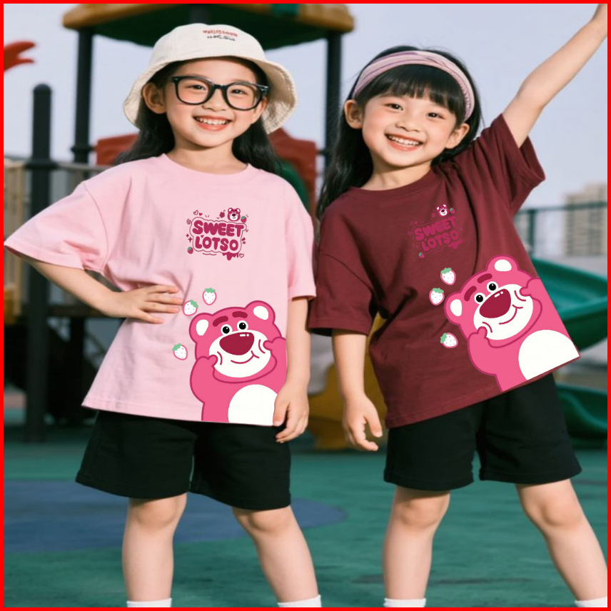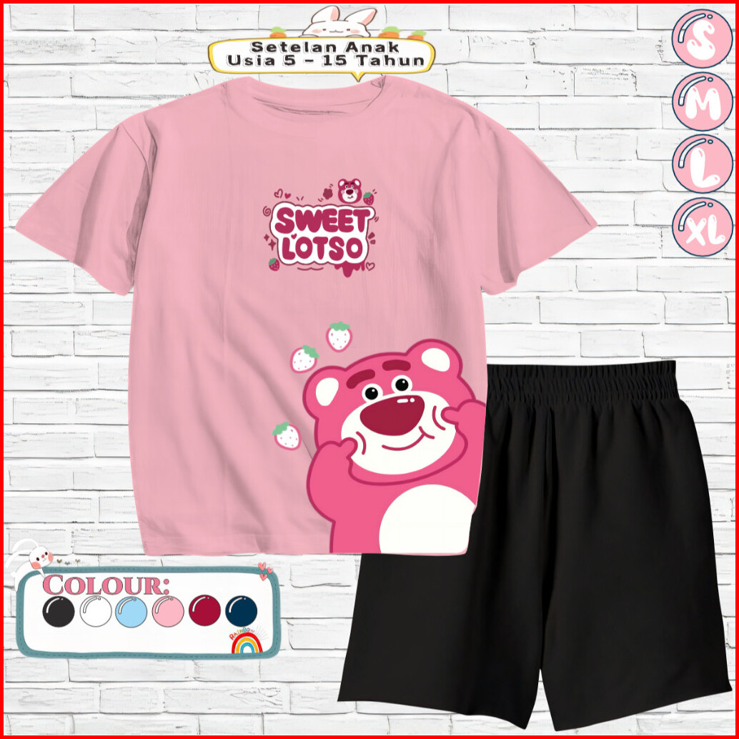 Setelan Anak Kaos Celana Pendek Baju Usia 5-15 Tahun Motif Sweet Lotso