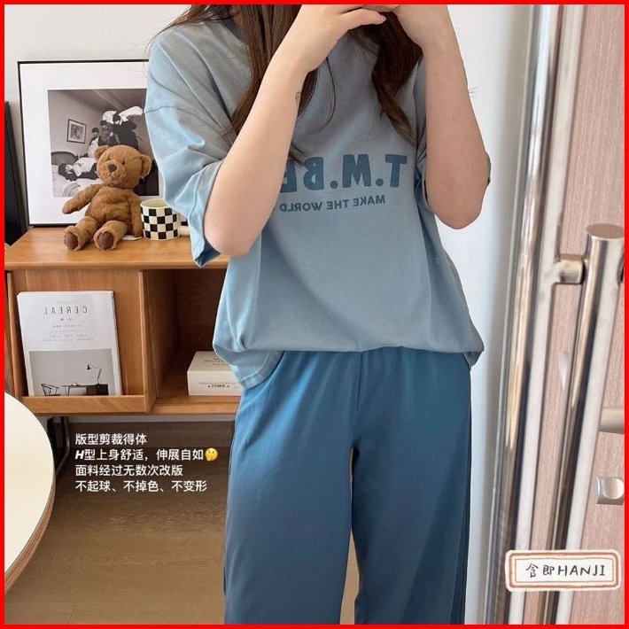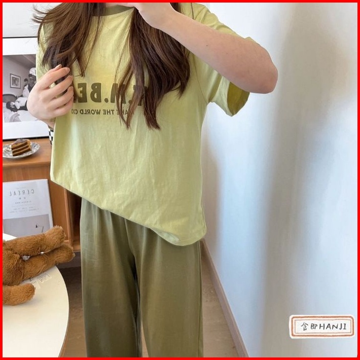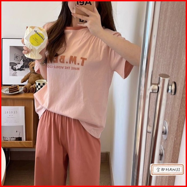 Ss Piyama Wanita Import Baju Rumah 1 Set Lengan Pendek Celana Panjang
