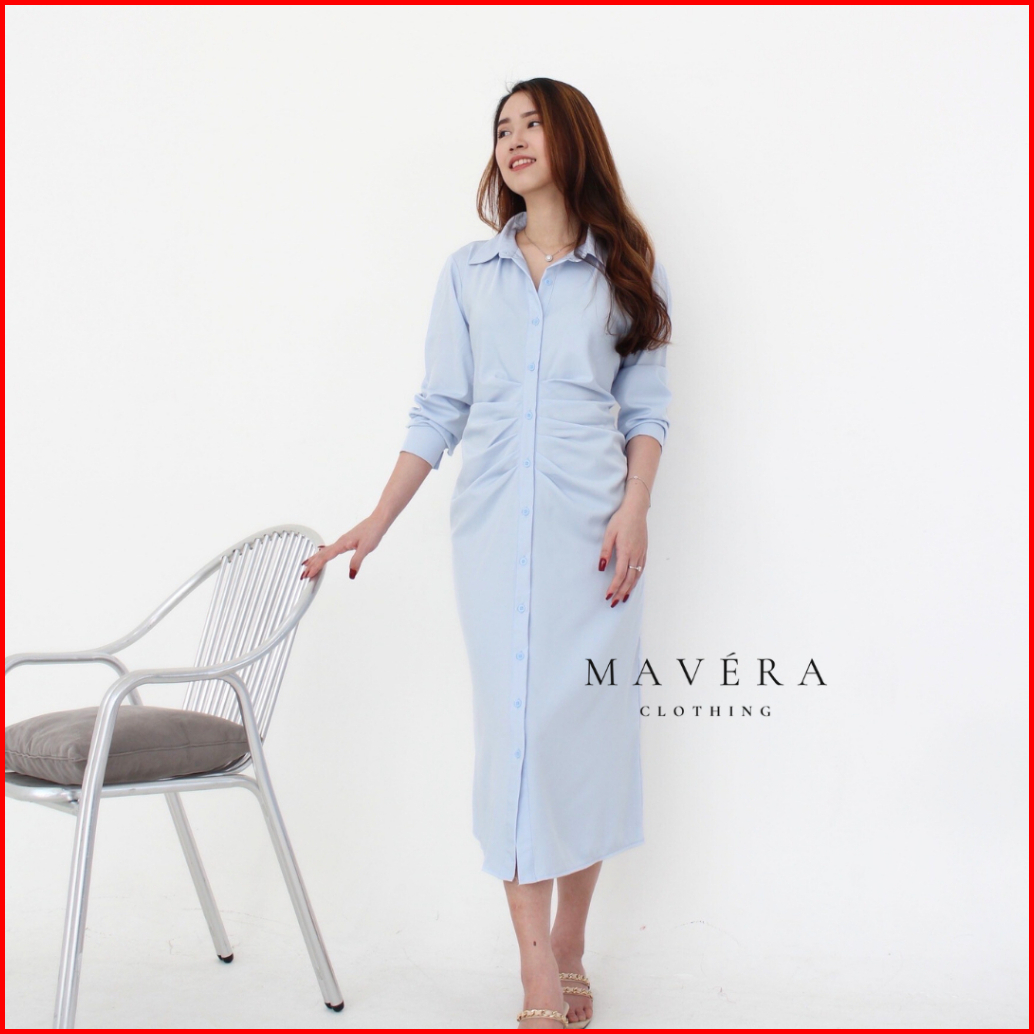 Mavera - Jasmine Pleated Dress Cotton Silk Bodycon Midi Dress Mewah Elegan Lembut Nyaman Simple Dress Wanita Casual