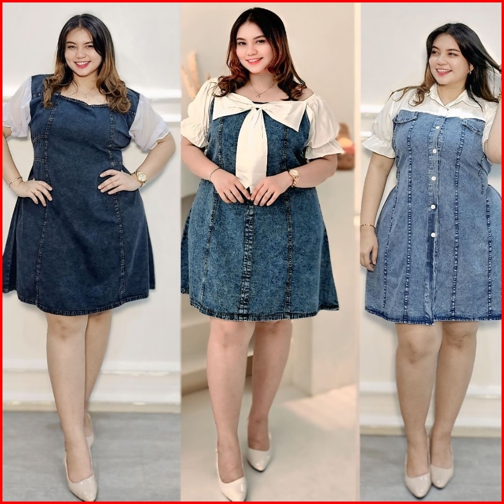 Dress Denim Korean Style Jumbo Terbaru Xxl Ld 120 Xxxl Ld 130
