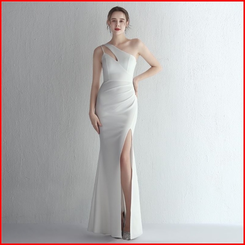 Herfoux Ivory One Shoulder Long Dress Pesta Bridesmaids