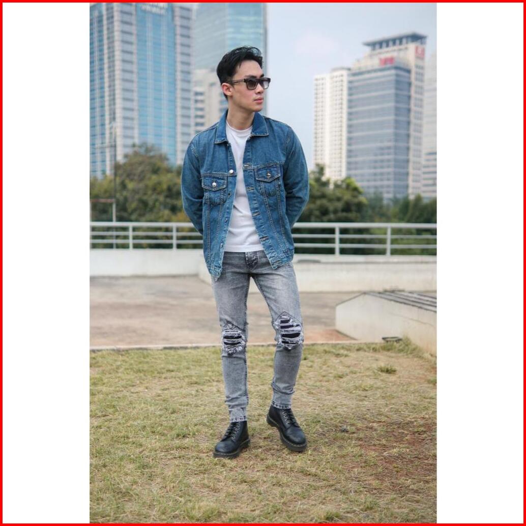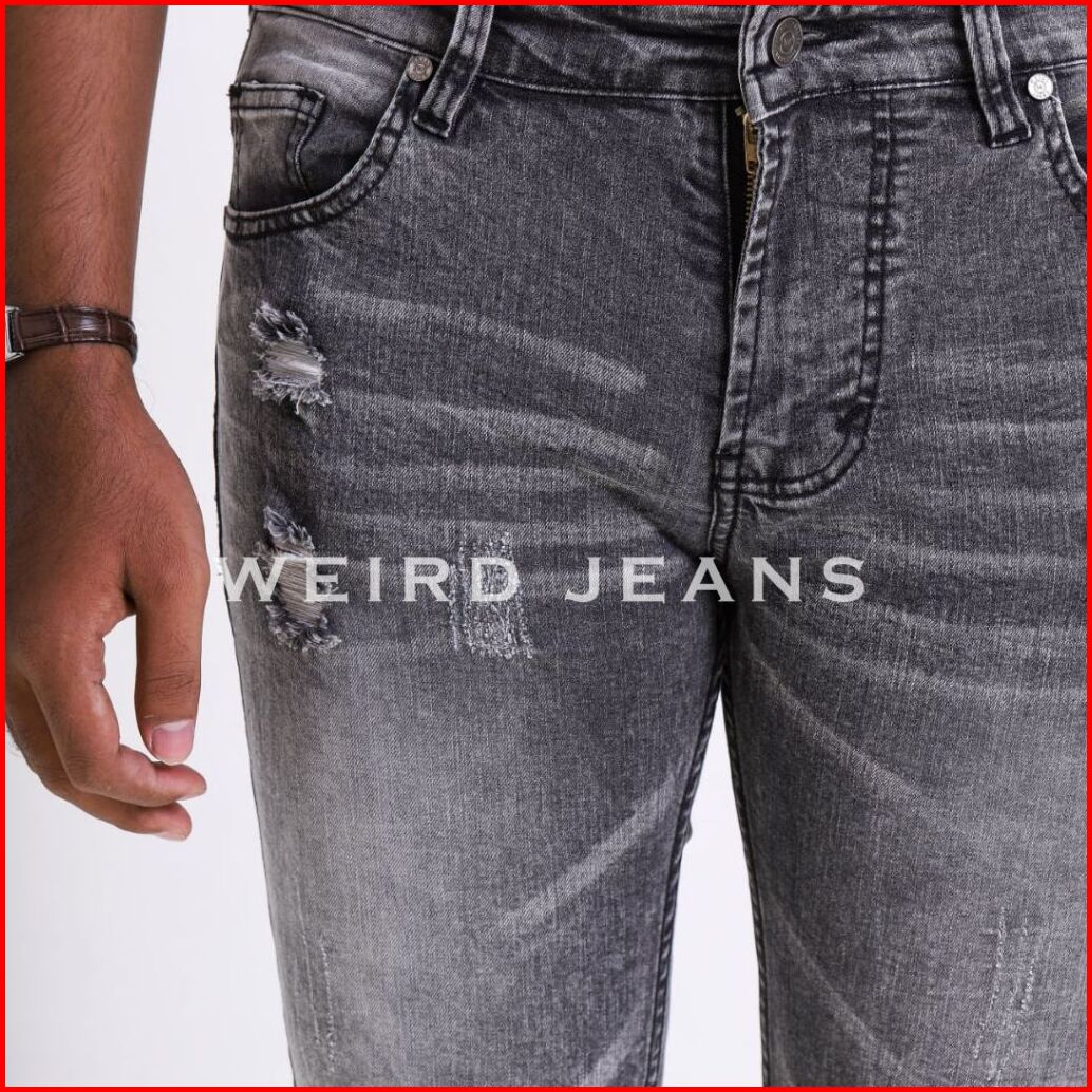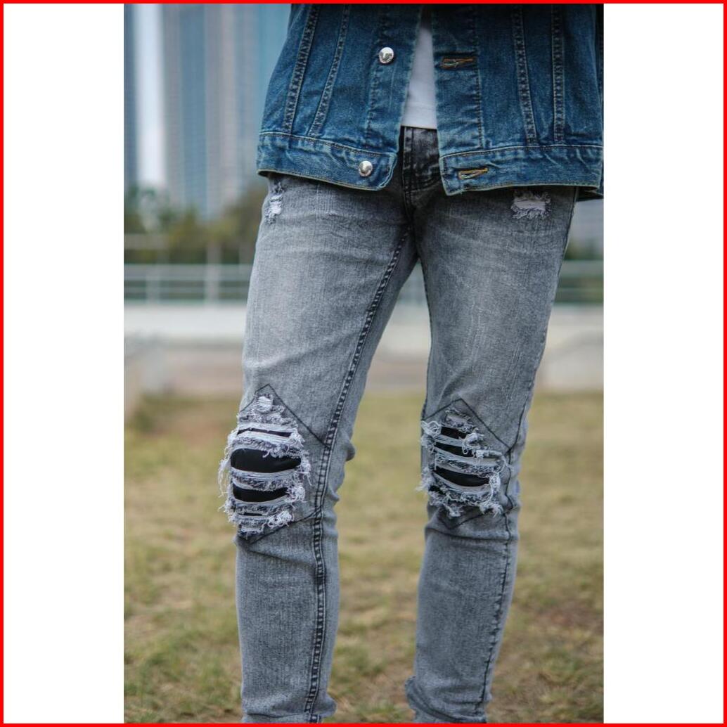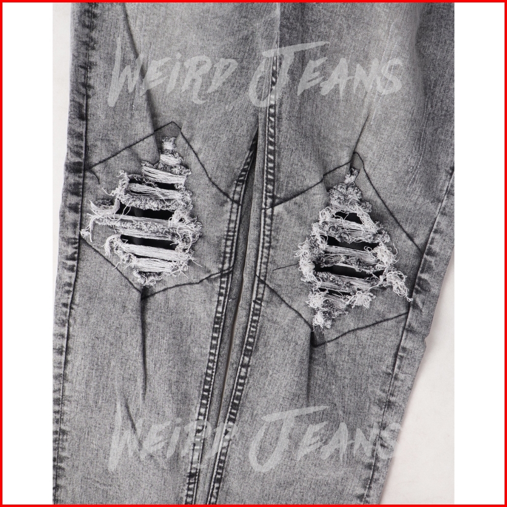 Weird Jeans - Sky Grey - Celana Jeans Panjang Pria Slim Fit Strech Ripped Warna Abu-abu Nyaman