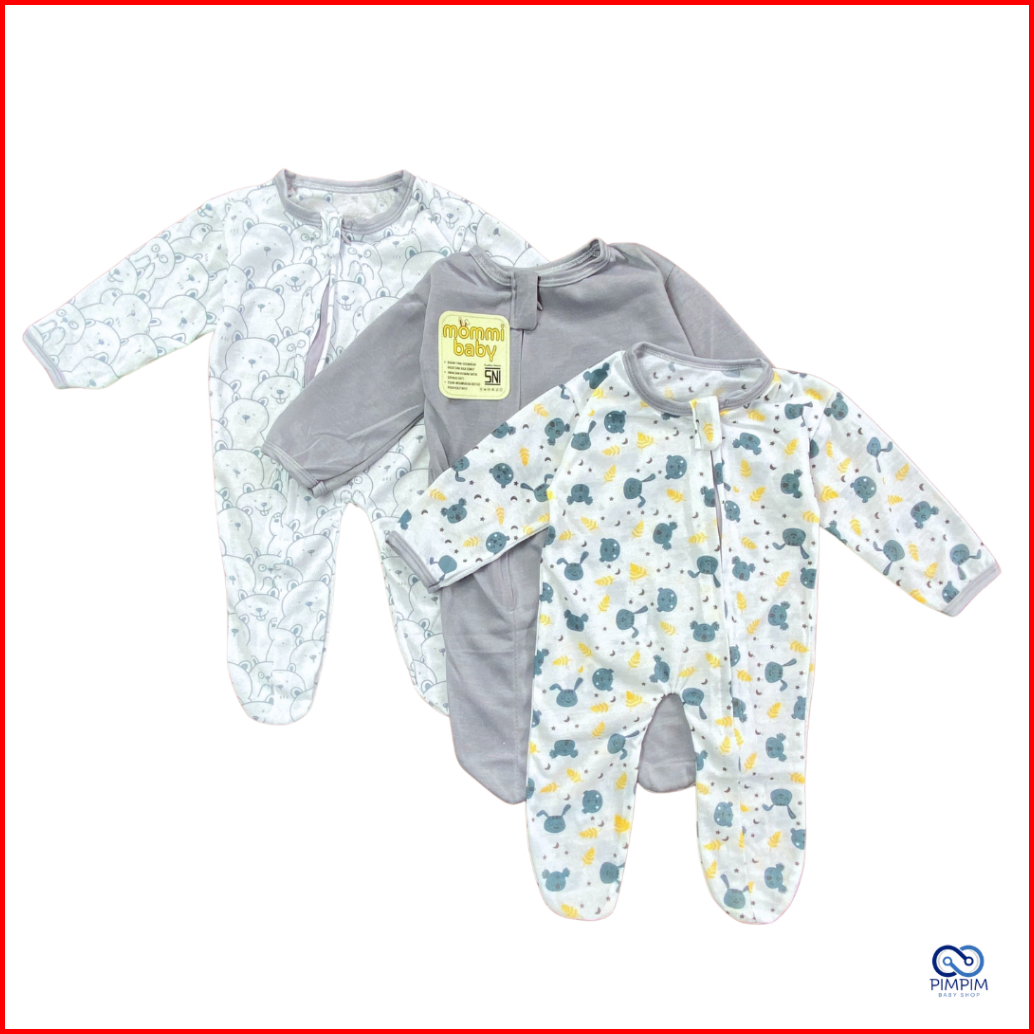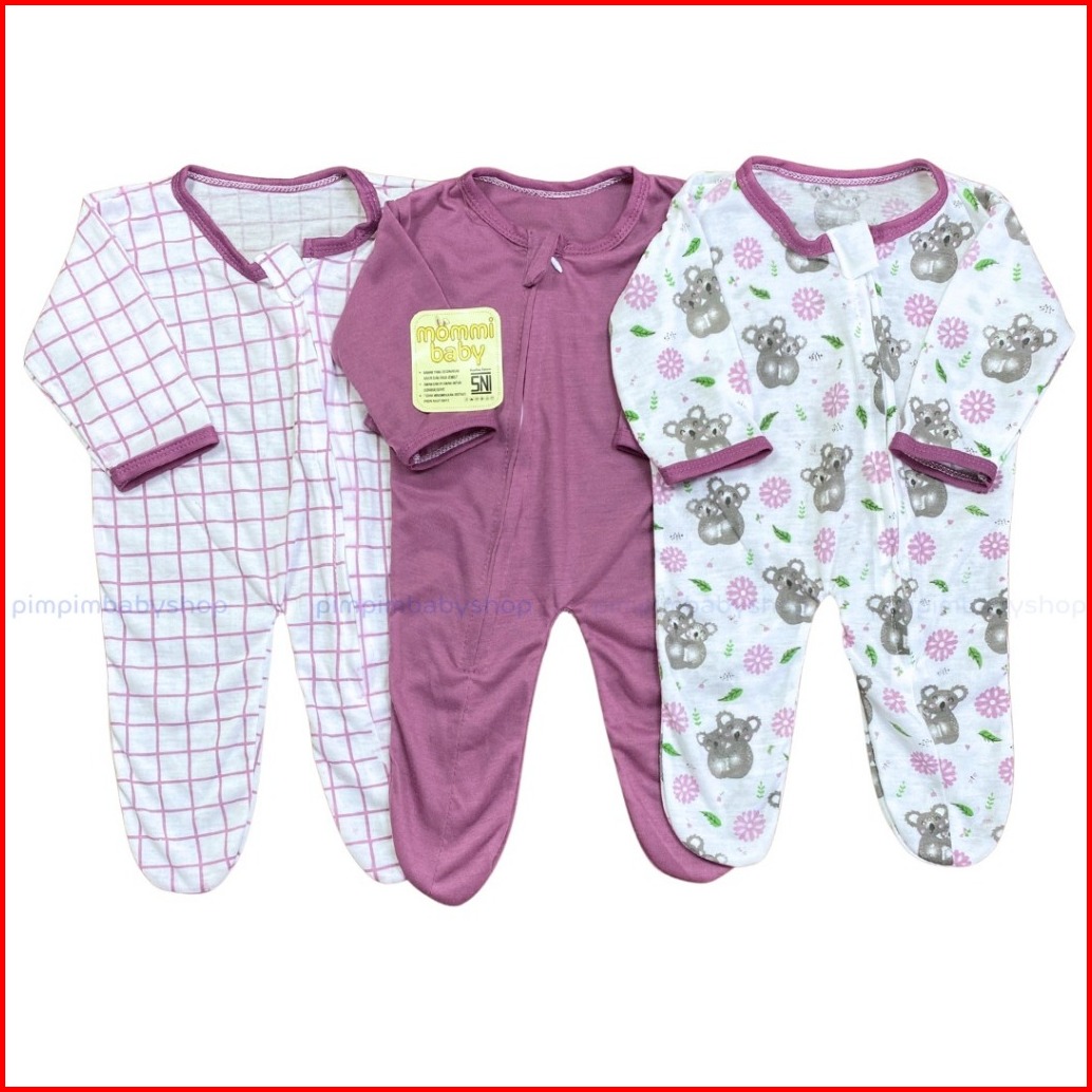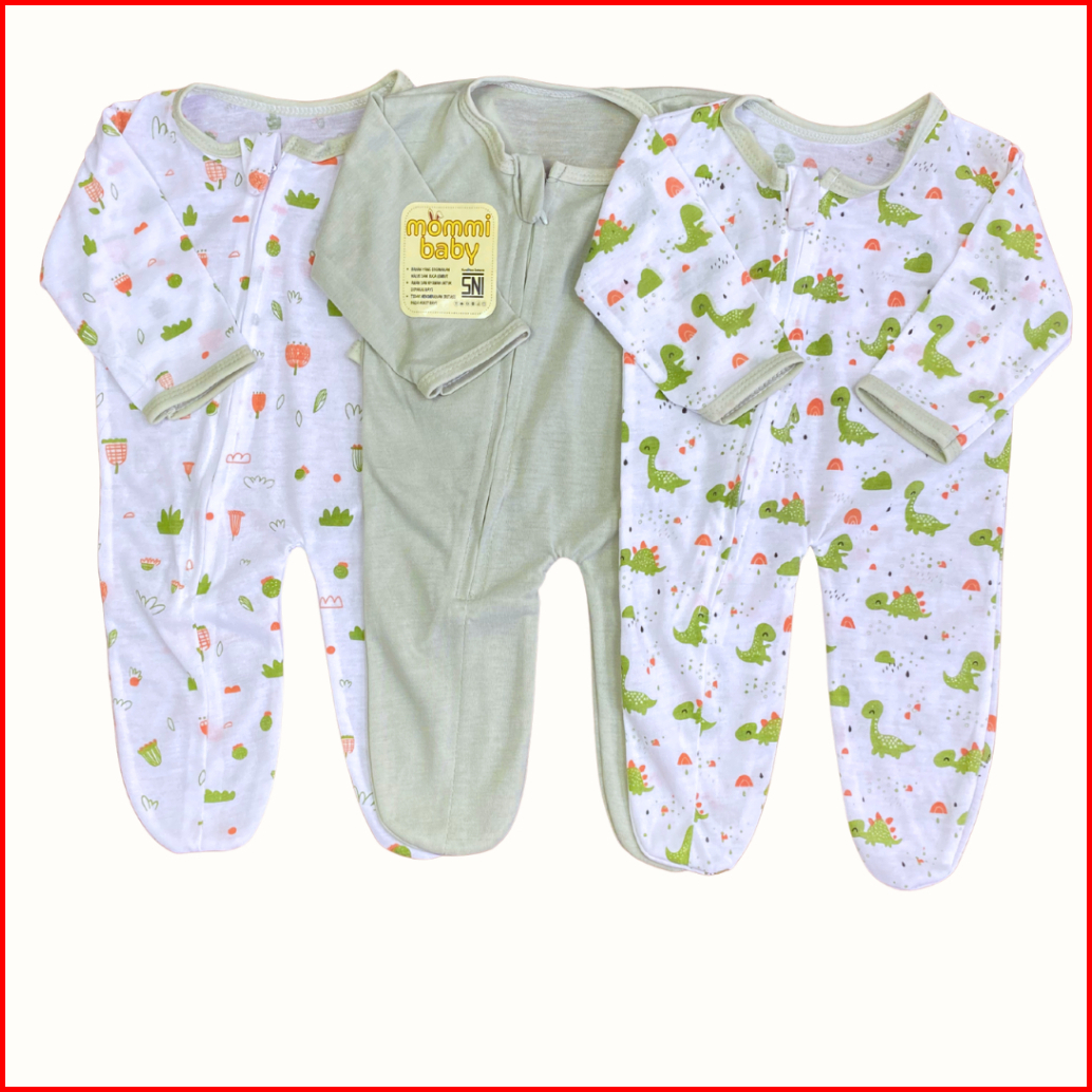 Isi 3 Pcs Sleepsuit Bayi Baru Lahir Zipper Tutup Kaki Romper Jumper Baby Newborn Bodysuit Piyama Baju Tidur Bayi Lengan