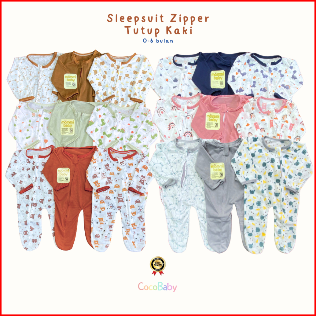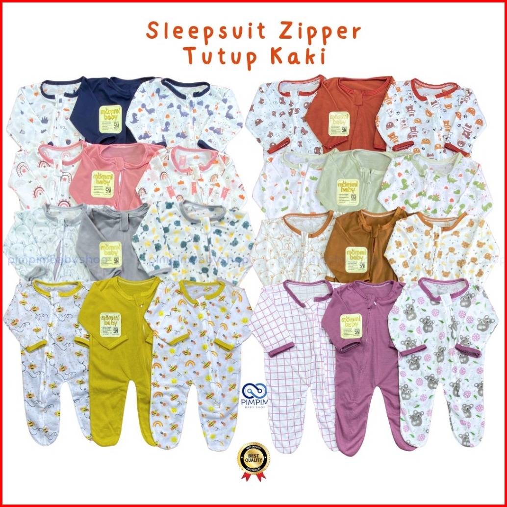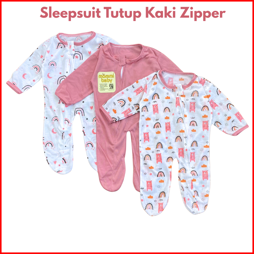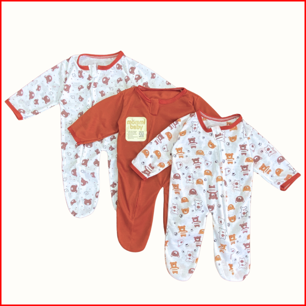 Isi 3 Pcs Sleepsuit Bayi Baru Lahir Zipper Tutup Kaki Romper Jumper Baby Newborn Bodysuit Piyama Baju Tidur Bayi Lengan