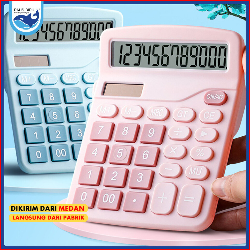 Paus Biru Medan- Kalkulator Digital 12-bit Electronic Calculator Baterai Dan Energi Surya Caclulator