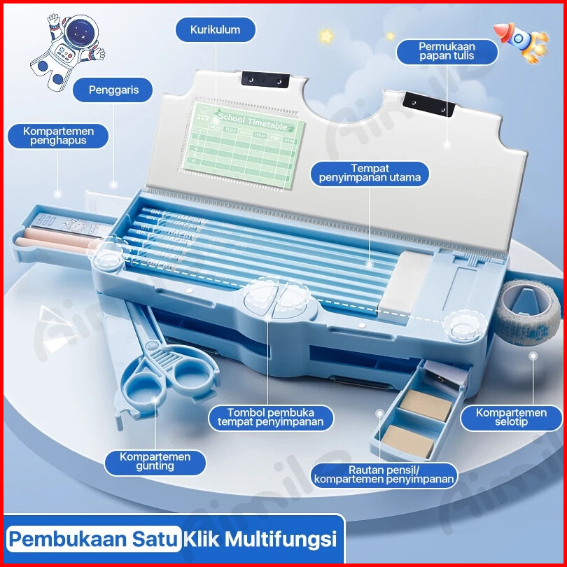 Paus Biru - Kotak Pensil Tempat Pensil Bahan Plastik Multifungsi Untuk Multifungsi Kotak Penyimpanan Alat Tulis