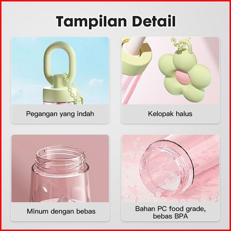 Paus Biru - Botol Minum Transparan 500ml Tumbler Aesthetic Botol Minum Portable Bpa Free High Quality Medan Ready Stock