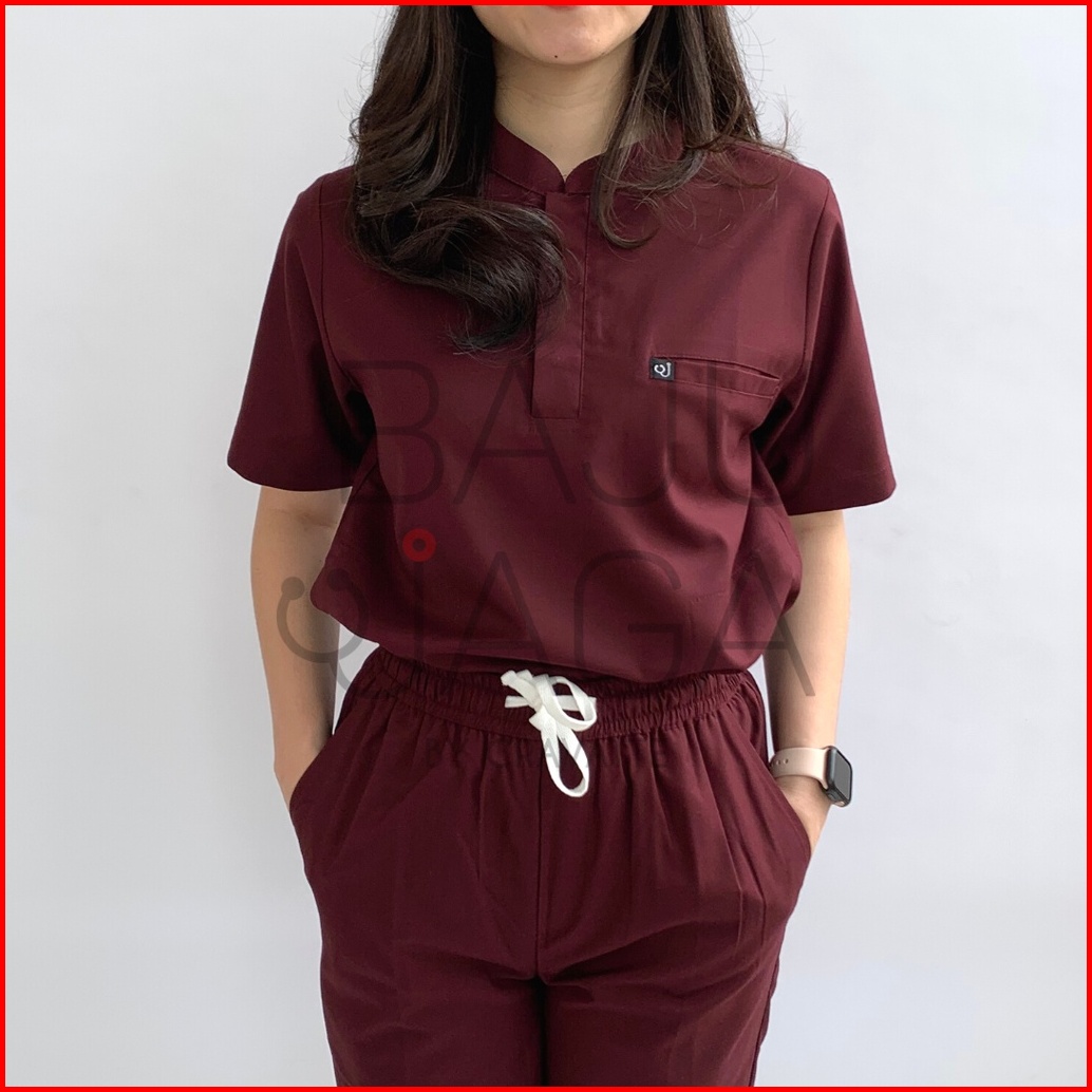 Baju Jaga Scrub Mandarin Collar Lengan Pendek