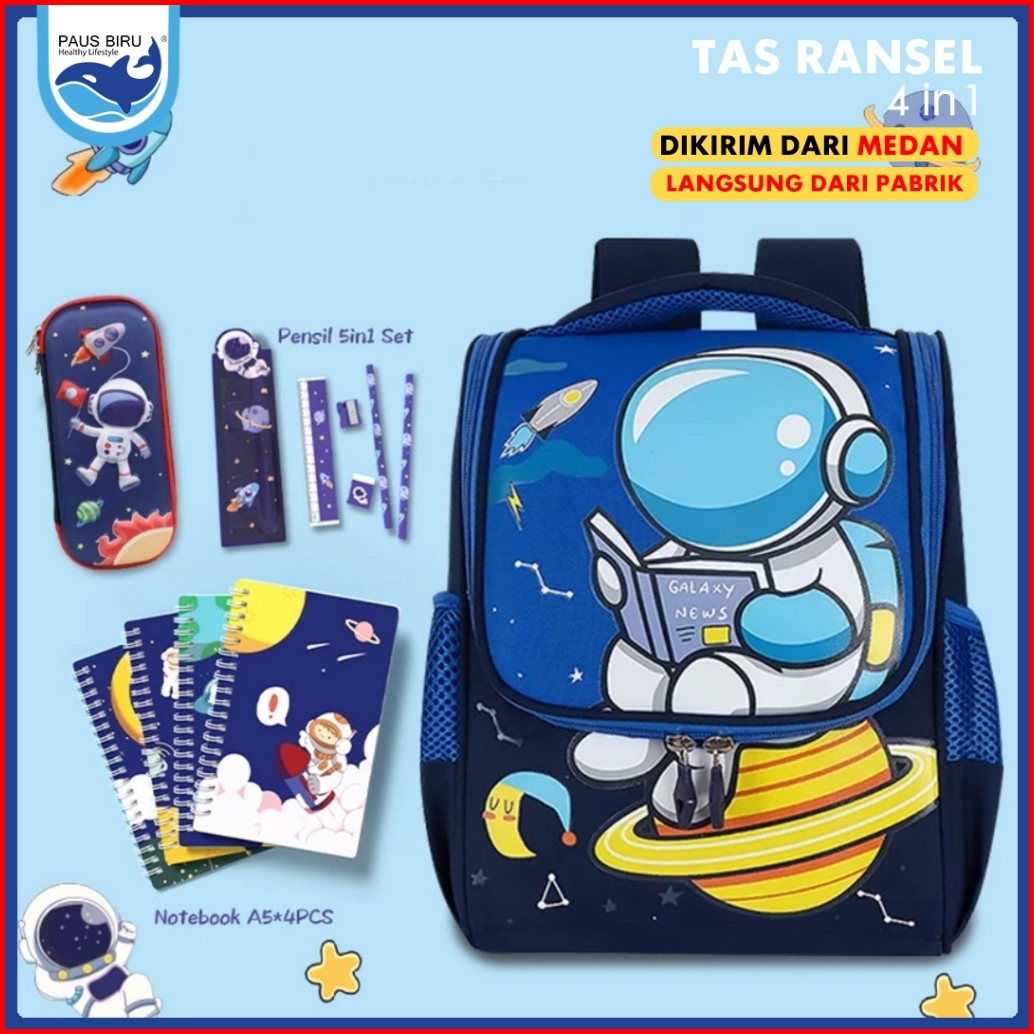 Paus Biru -tas Ransel Anak 4in1 Set Tas Sekolah Anak Laki Laki Perempuan Tk Sd Alat Tulis Sekolah