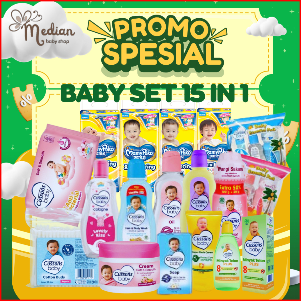 Cussons Baby Set 15 In 1 Paket Perawatan Bayi Baru Lahir Komplit Perlengkapan Mandi Kado Lahiran