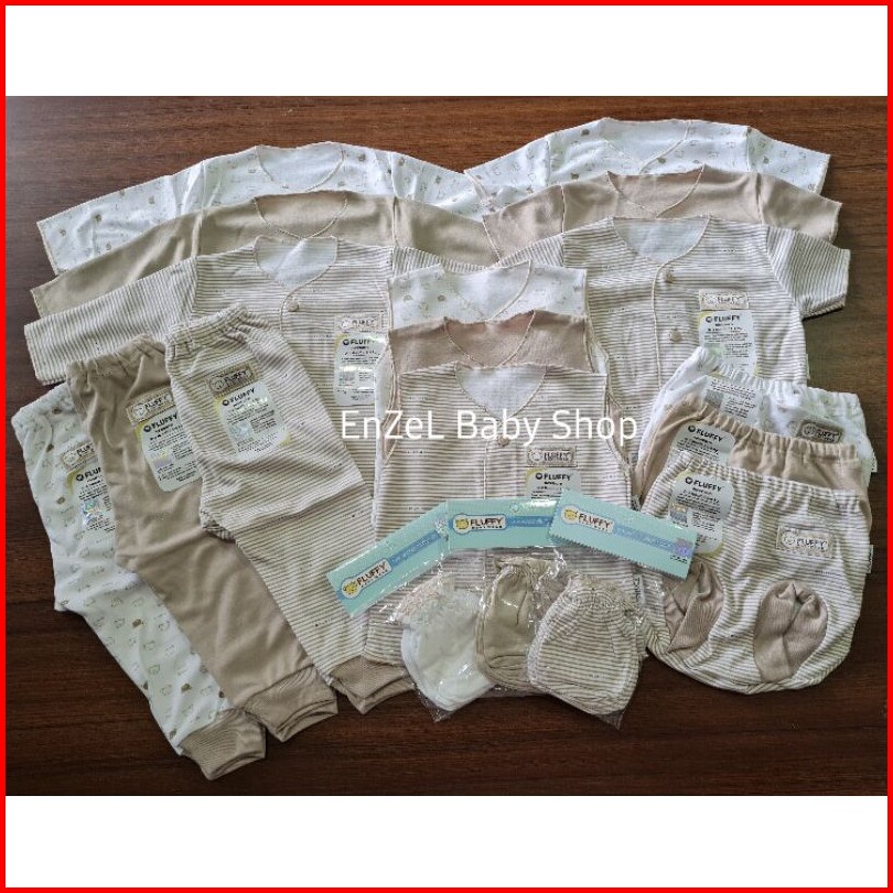 Paket Baju Bayi Fluffy Neci Size Newborn 0-3 Bulan Khaki Series Seri Coklat Brown Paket Kki