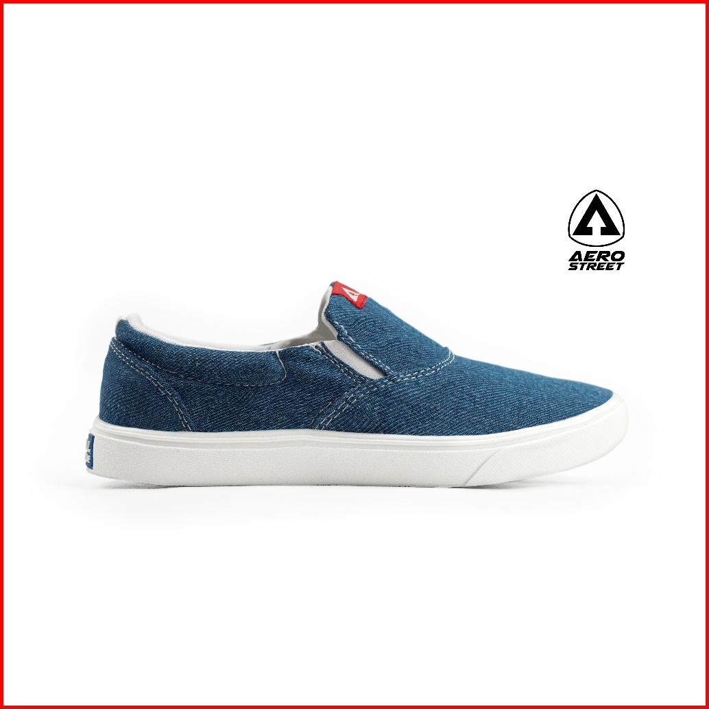 Aerostreet 37-44 Comfy Putih Navy Light Denim - Sepatu Slip On Pria Wanita