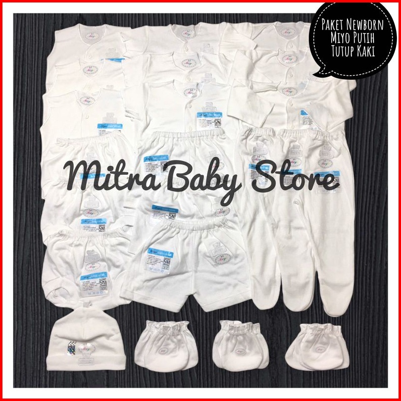 Paket Newborn Miyo Putih 0-3m 31 Pcs Paket Baju Bayi Lahiran Putih Polos