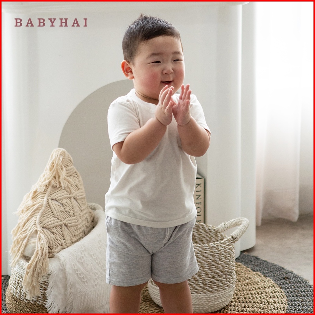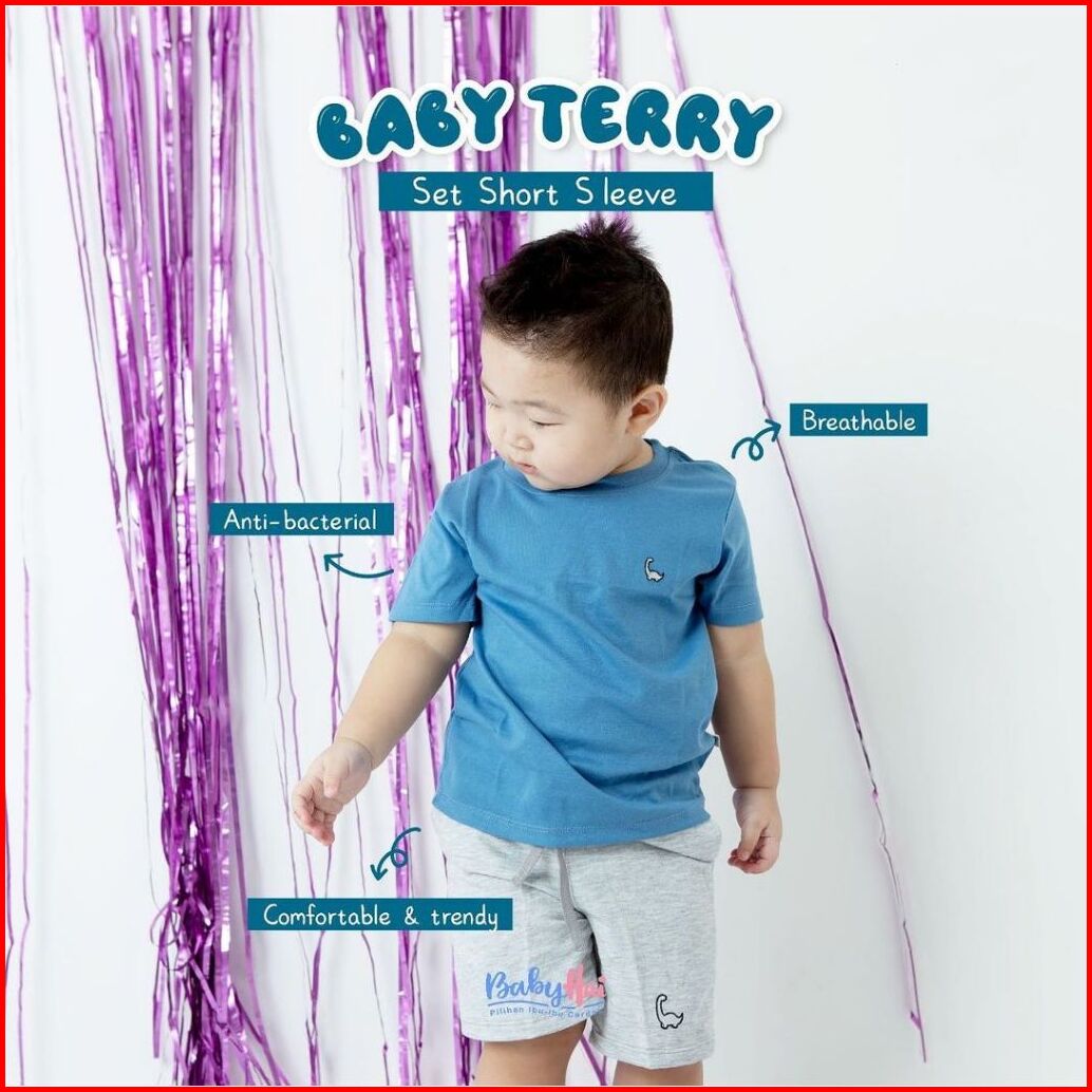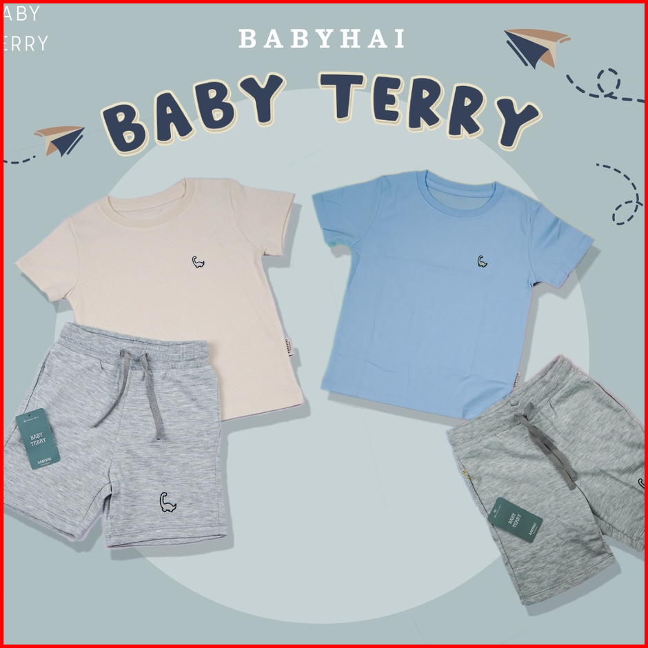 Baby Hai Baby Terry - Setelan Baju Pendek Celana Pendek - Seri Grey