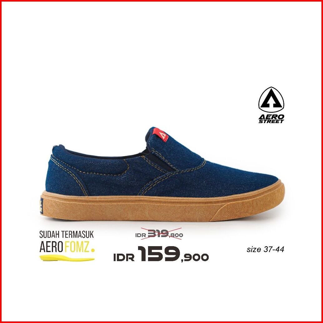 Aerostreet 37-44 Comfy Gum Navy Denim - Sepatu Slip On Pria Wanita