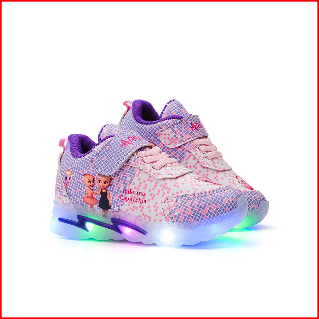 Arkana - New Sepatu Lampu Led Anak Perempuan Model Sneakers Gambar Balerina Capucina Karakter Jibbitz Balerina Capucina