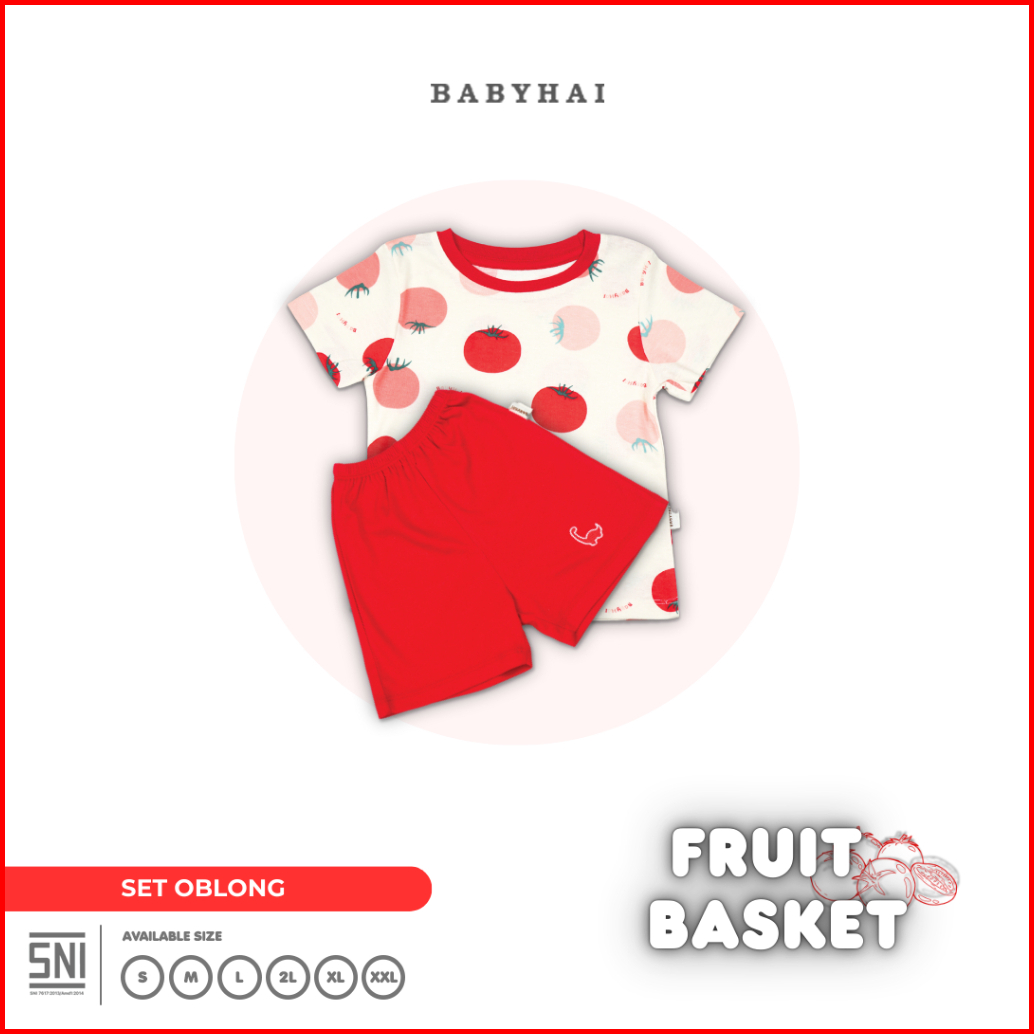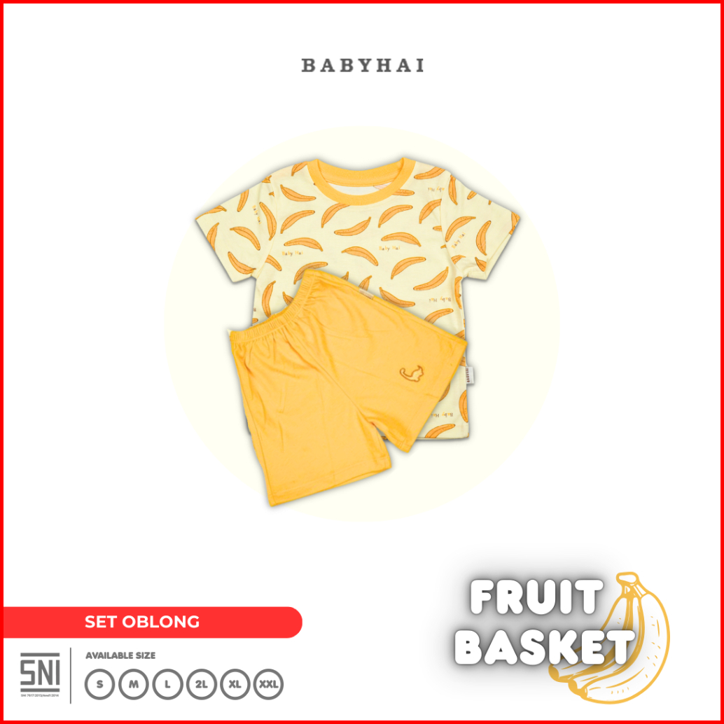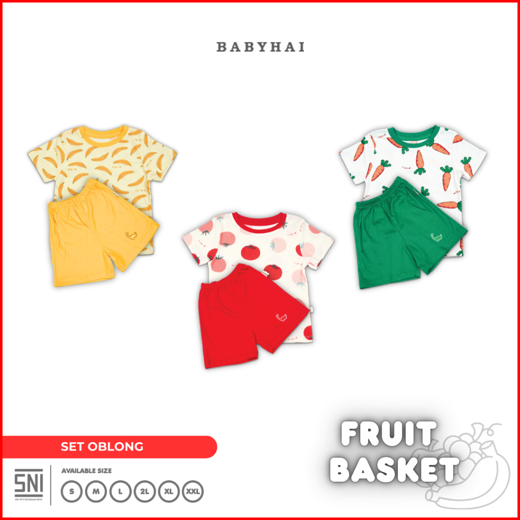 Baby Hai Fruit Basket - Setelan Oblong Baju Pendek Celana Pendek Bayi