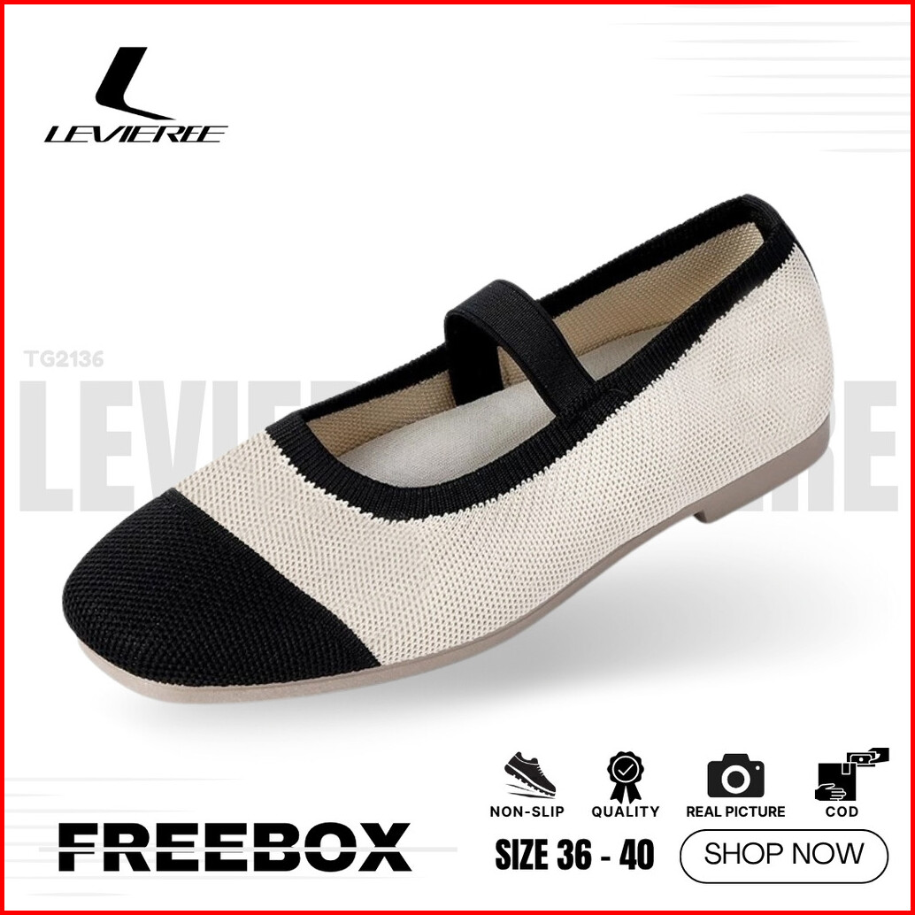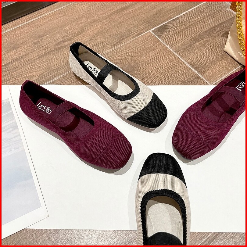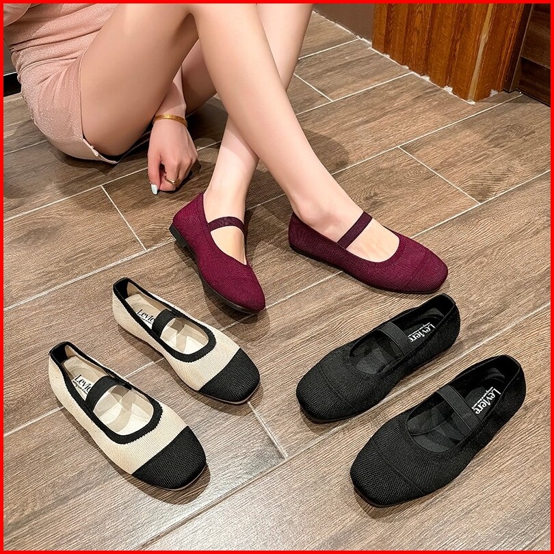 Lvr Heejin Free Box Flatshoes Wanita Mary Jane Flats Knit Tg2136