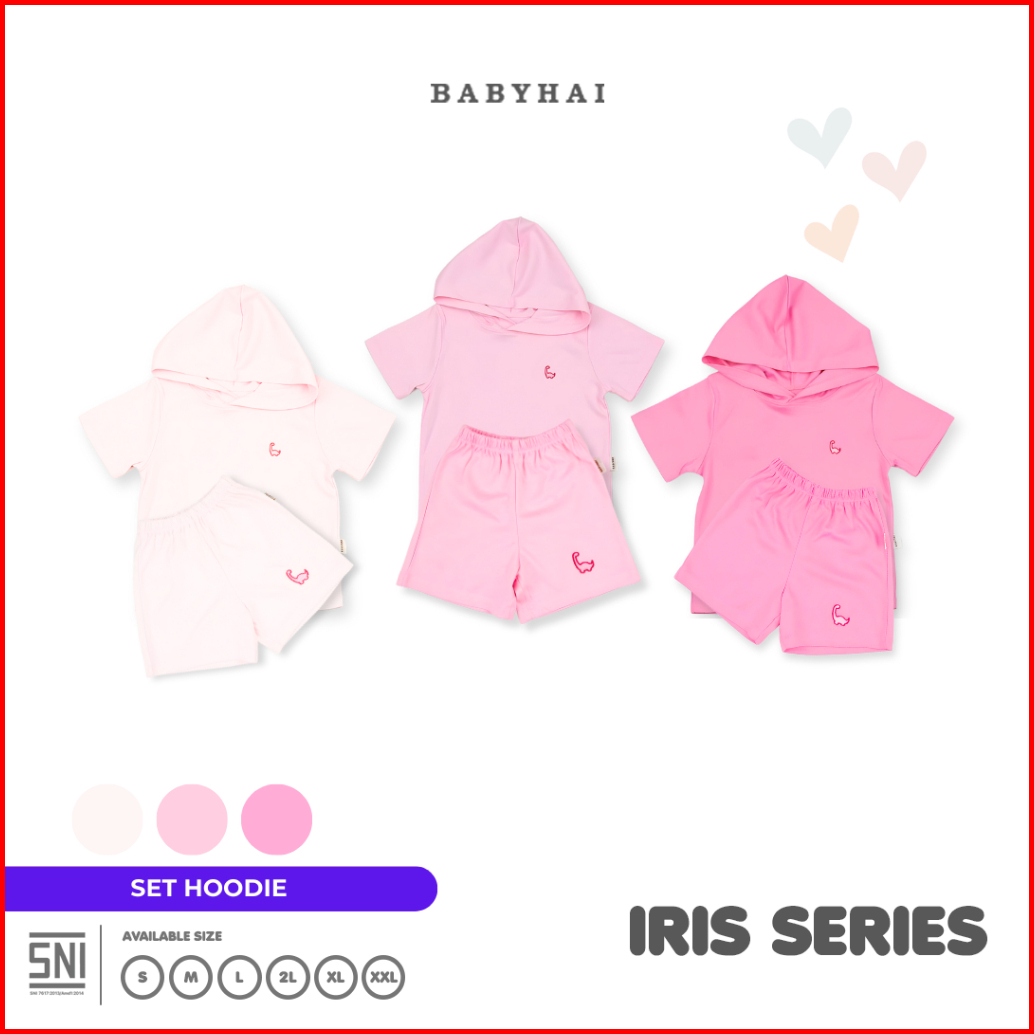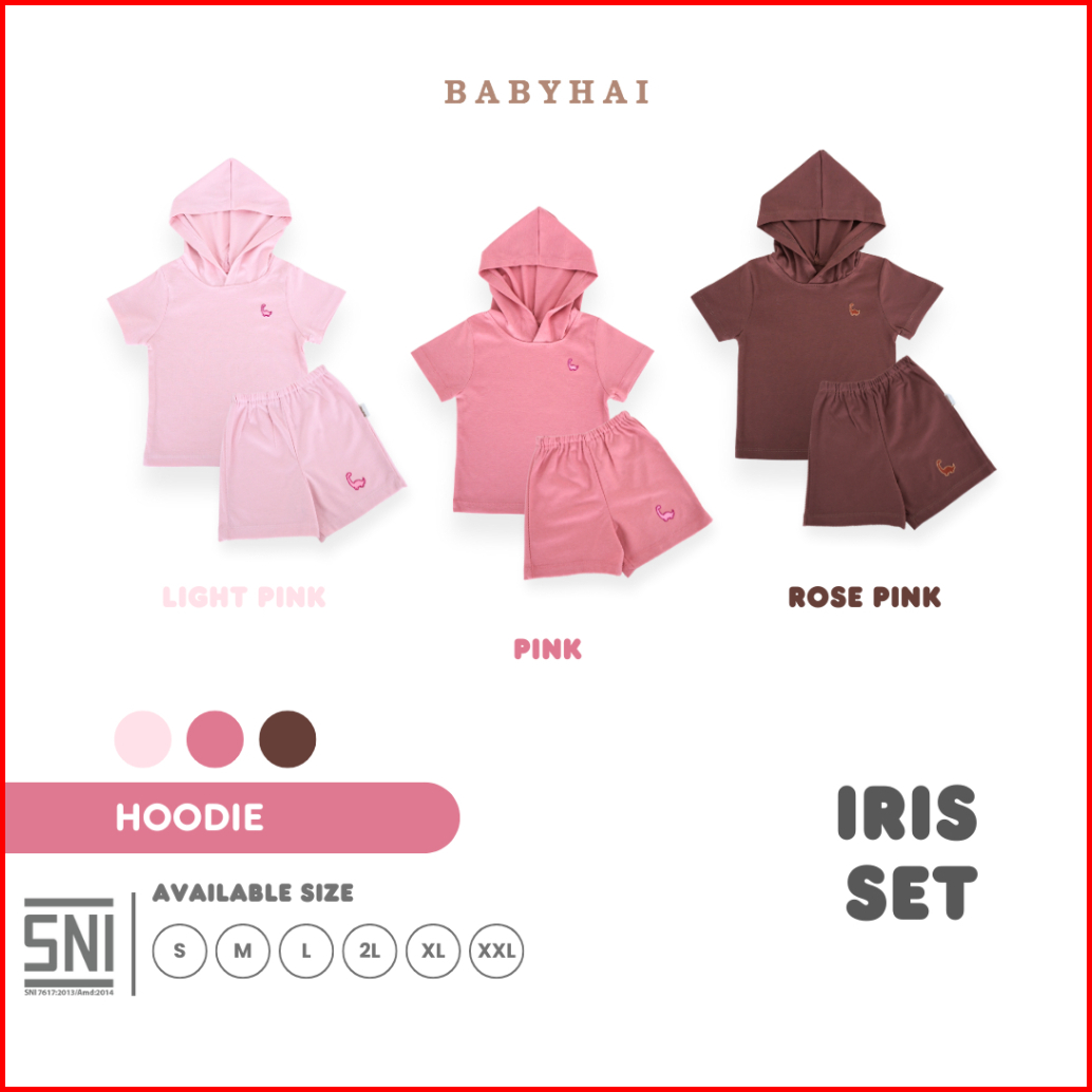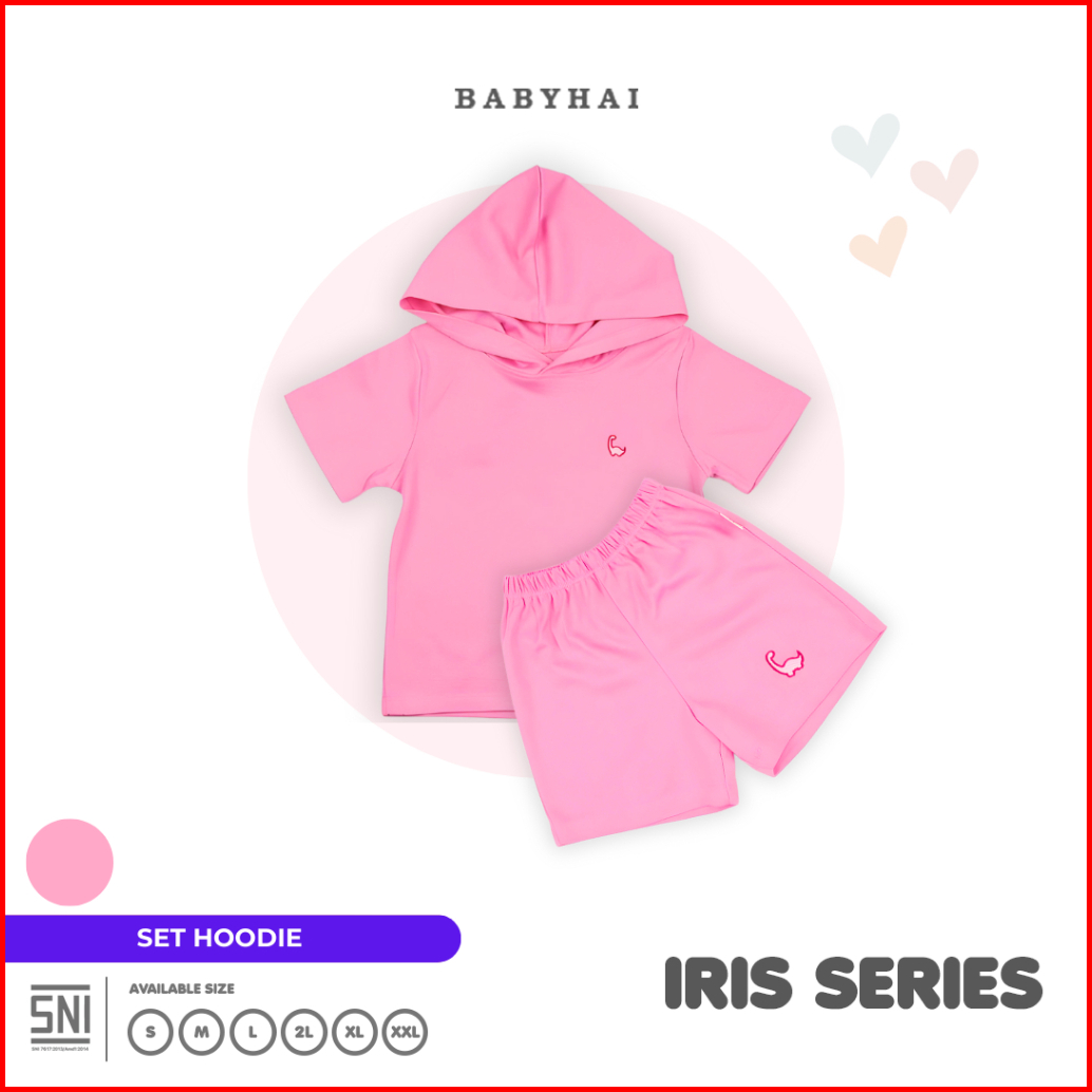 Baby Hai Iris Set - Setelan Hoodie Baju Pendek Celana Pendek - Seri Pink