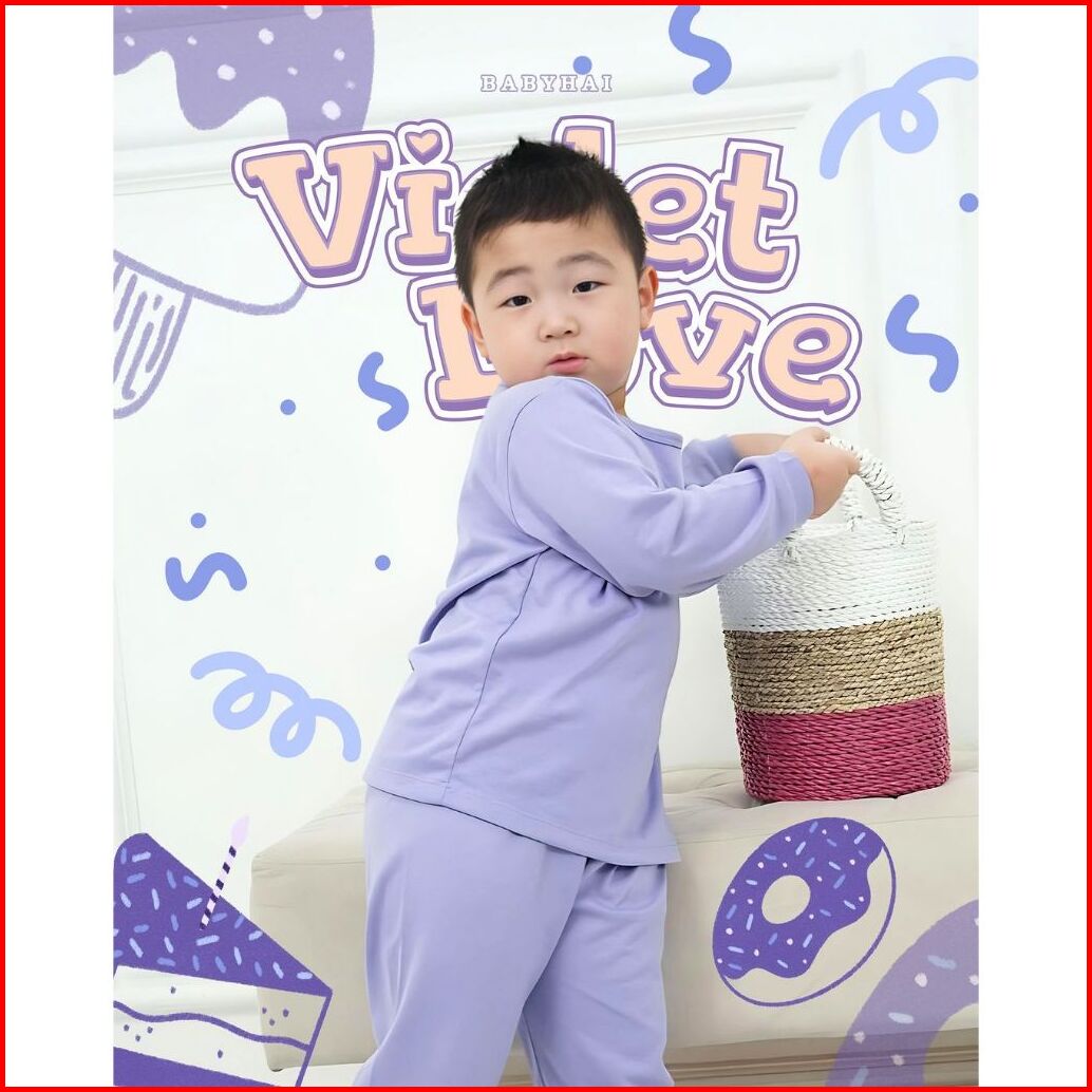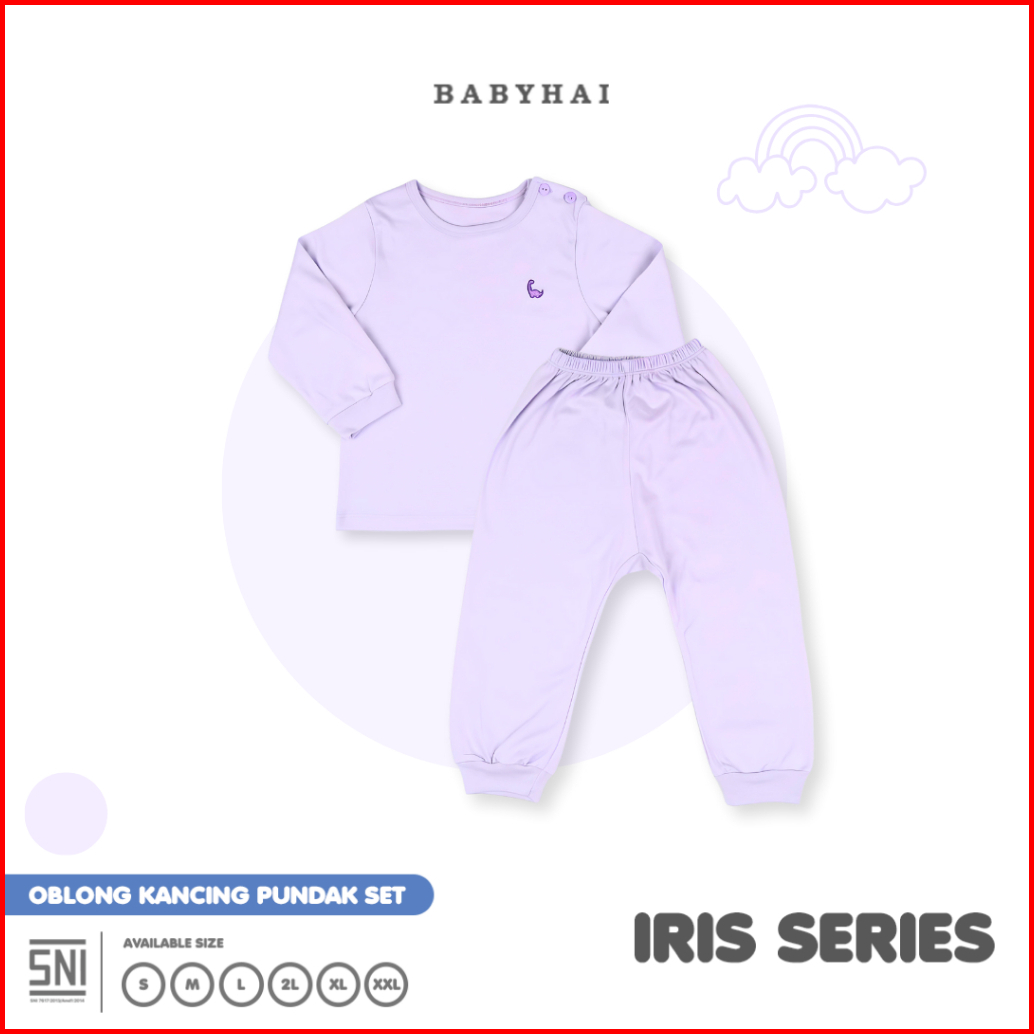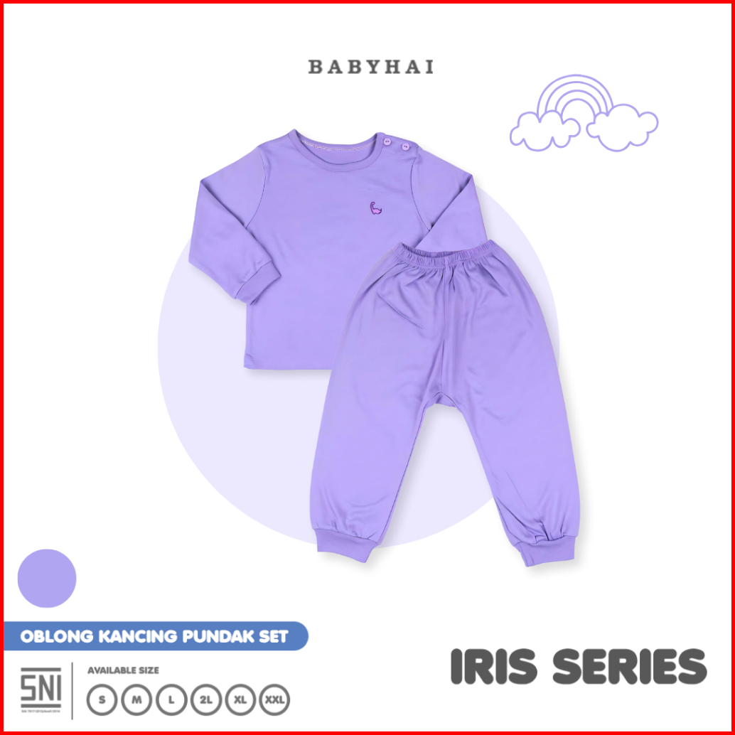 Baby Hai Iris Set - Setelan Kancing Pundak Polos Baju Panjang Celana Panjang - Seri Purple