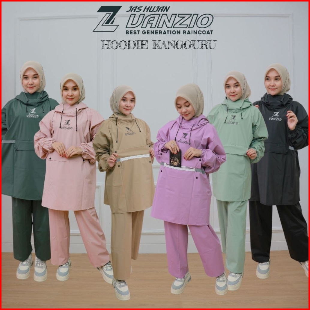 Vanzio Jas Hujan Hoodie Kangguru Pria Dan Wanita Bahan Tebal Kuat Dan Elastis