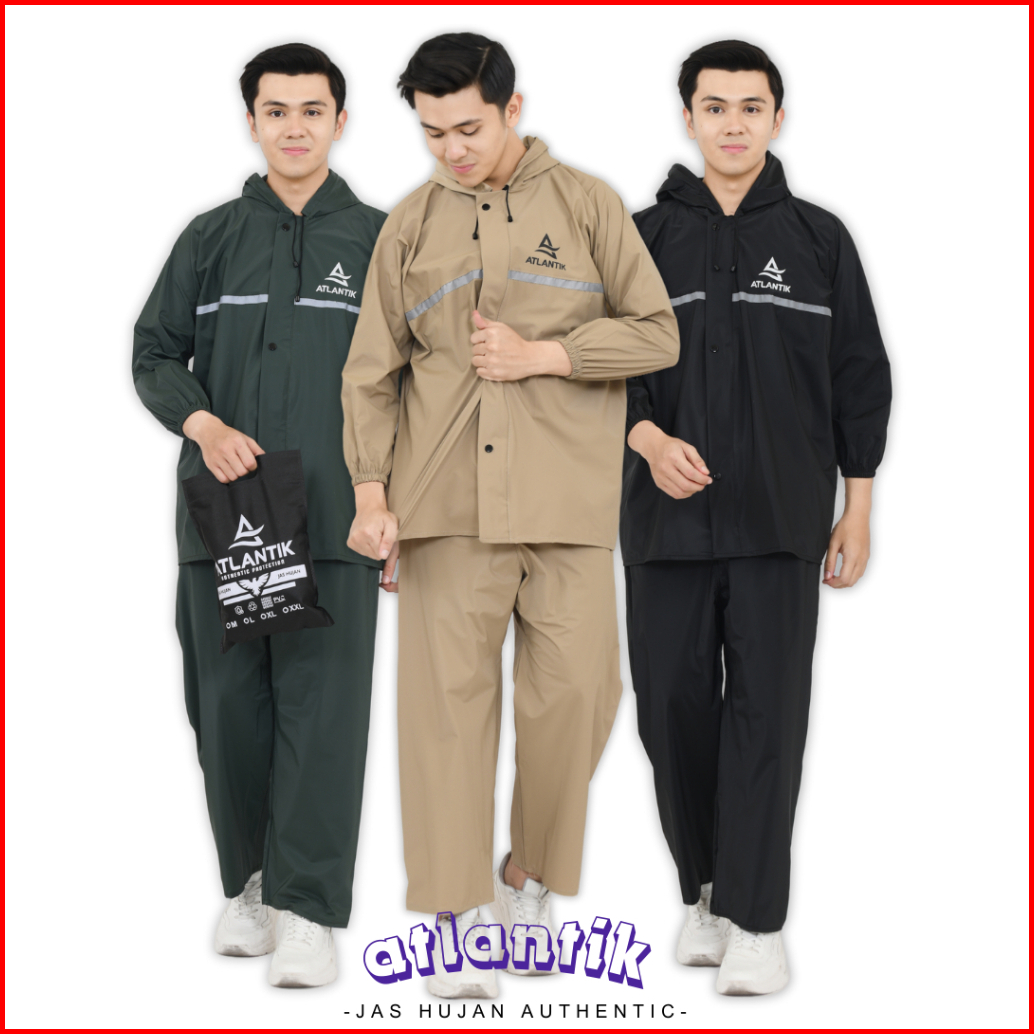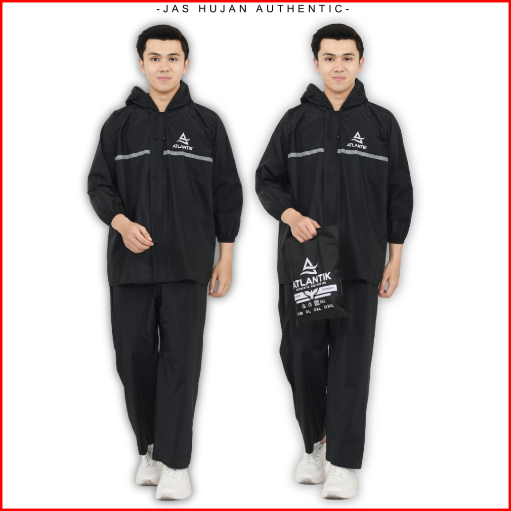 Jas Hujan Setelan Pria Dewasa Mantel Hujan Tebal Elastis Original Atlantik