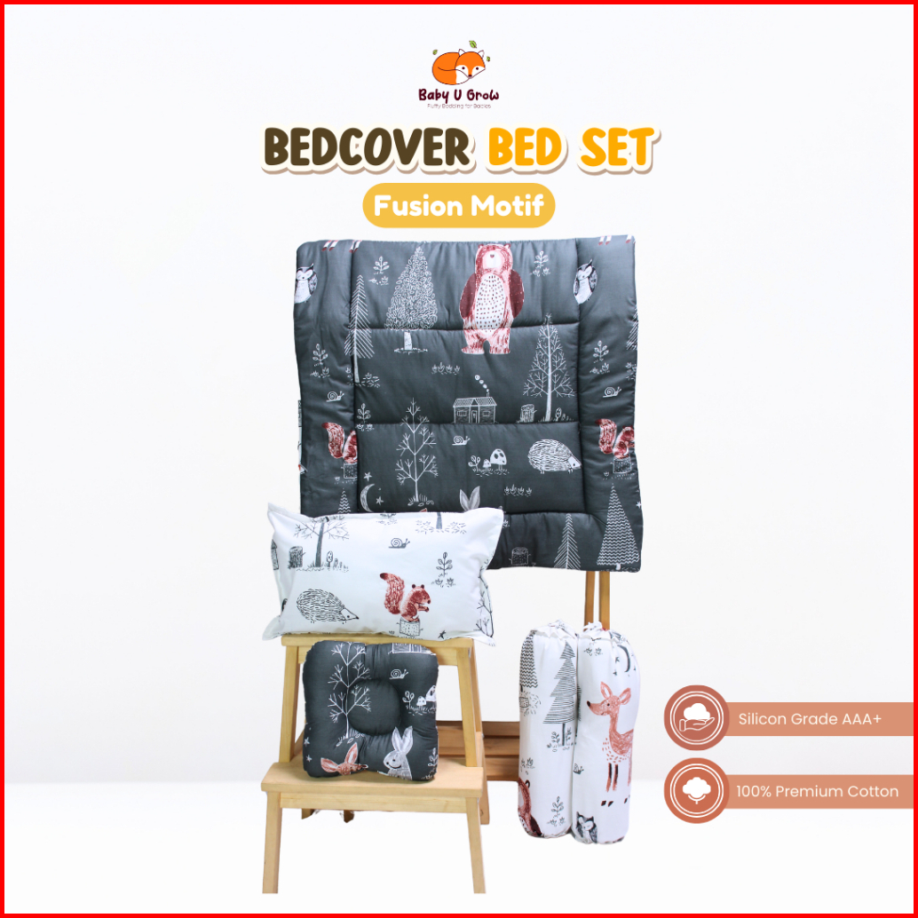 Baby U Grow - Bedcover Complete Set Bantal Peyang Guling 2 Motif - Katun Catra