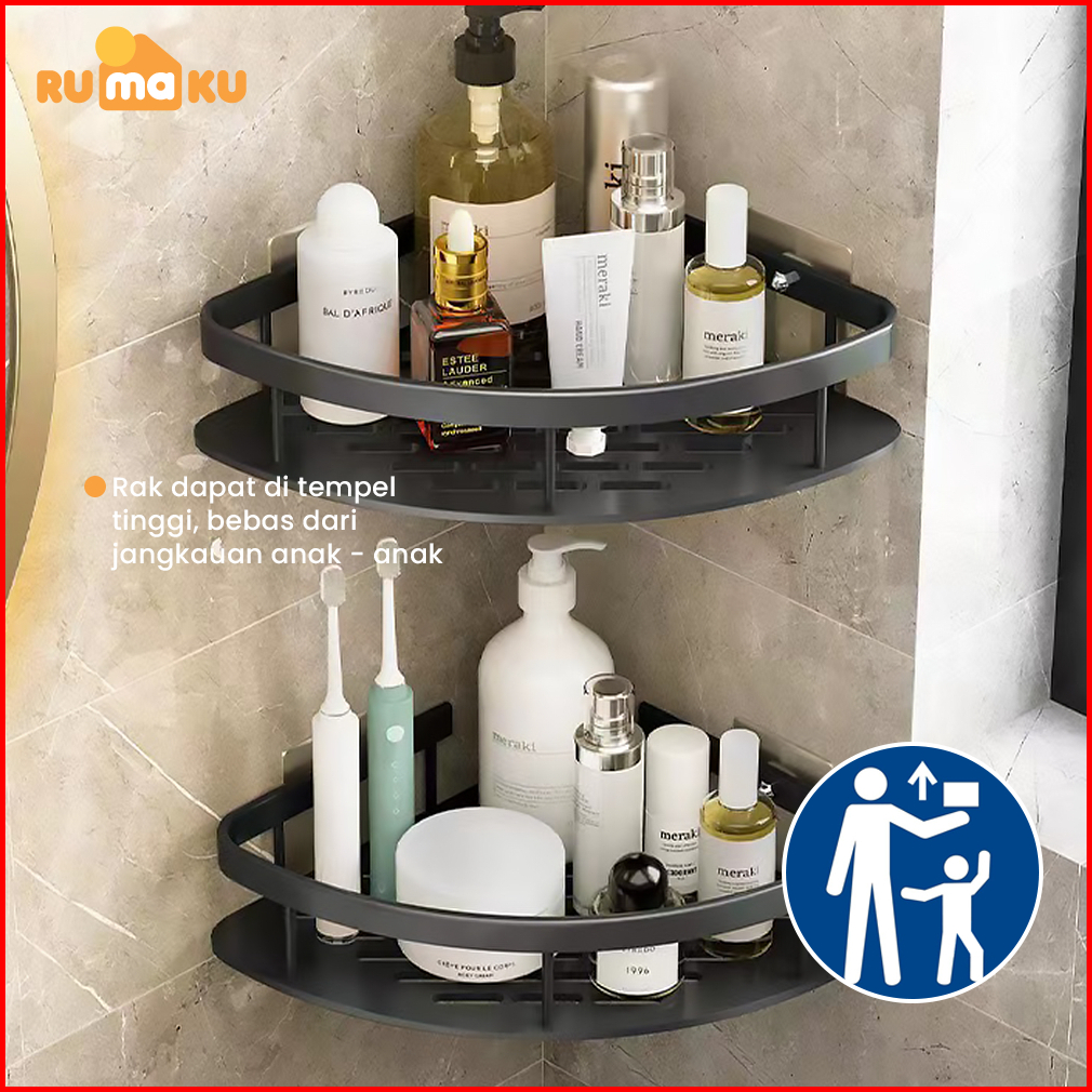 Rumaku Rak Sudut Estetik Kamar Mandi Tempat Sabun Toilet Minimalis Serbaguna Stainless Steel