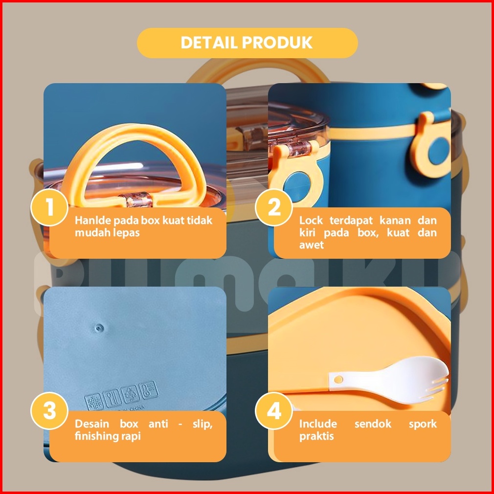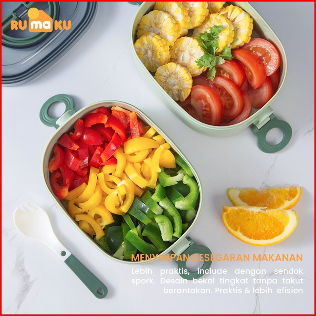 Rumaku Kotak Makan Bekal Tempat Makan Lunchbox 2 Layer Anti Tumpah 1400 Ml Kapasitas Besar Gratis Sendok Bpa Free