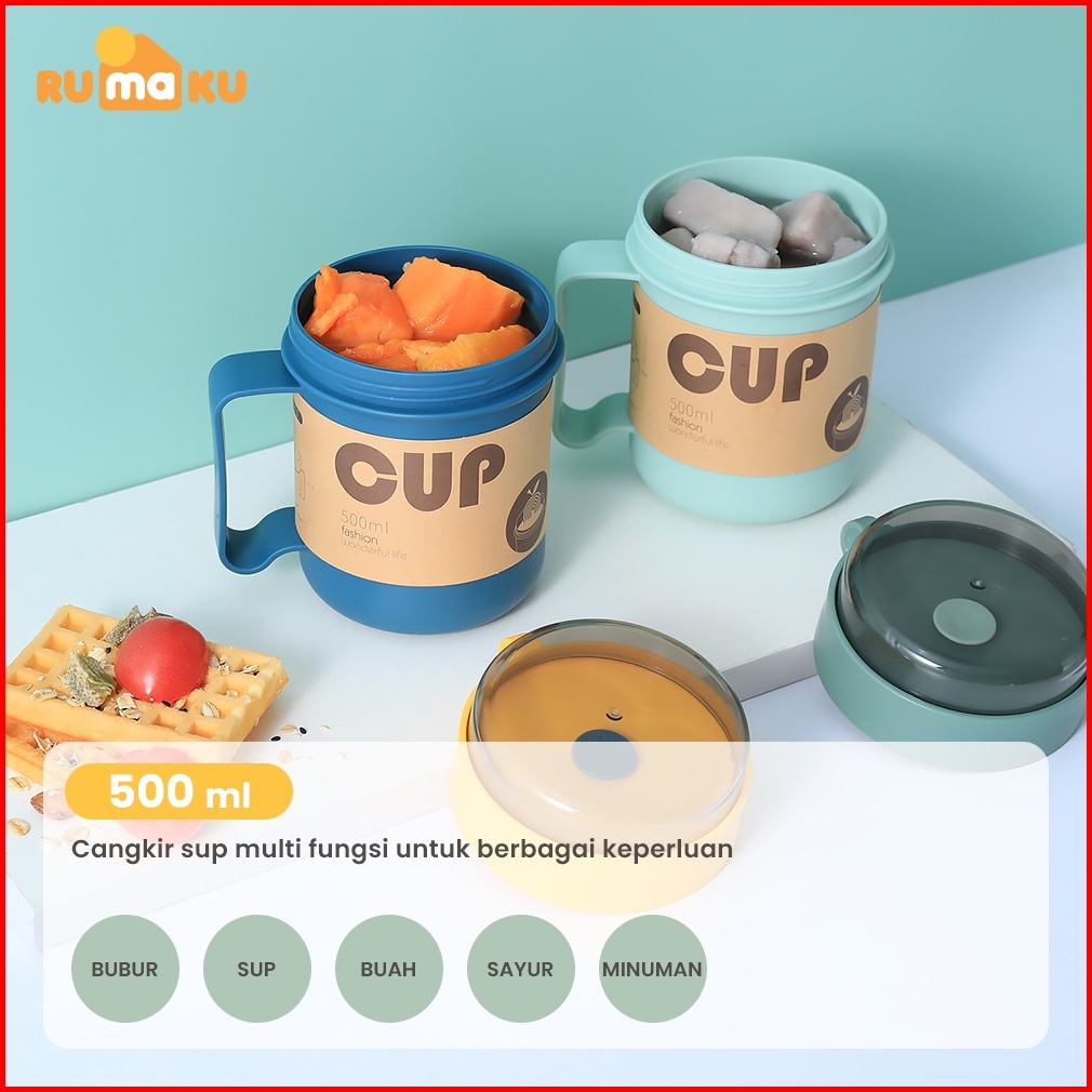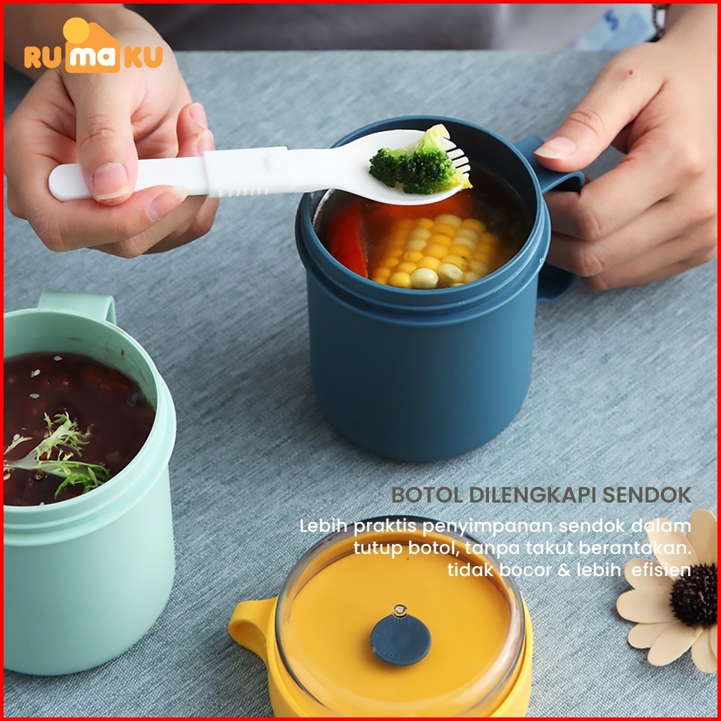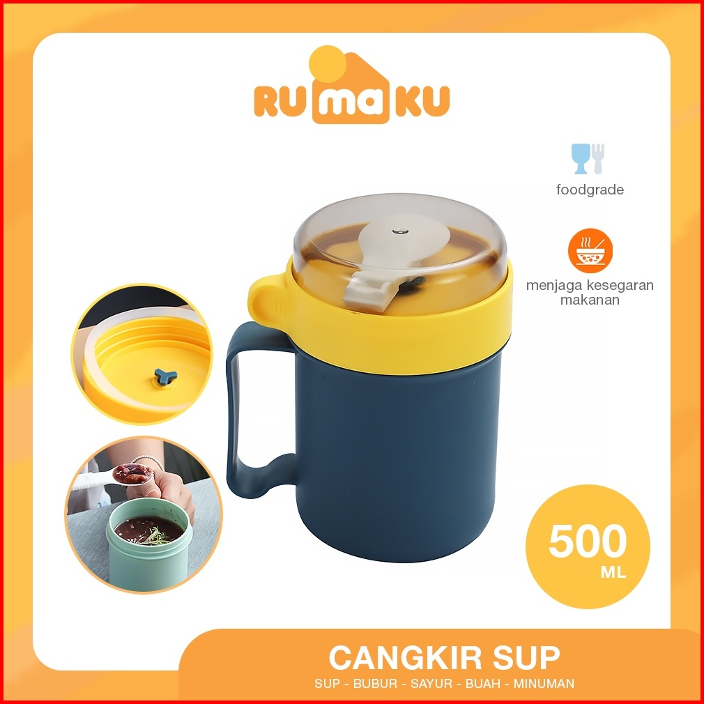 Rumaku Cangkir Sup Tempat Sup Mangkok Sup Portable Soup Cup Anti Bocor 500 Ml Free Sendok Bpa Free