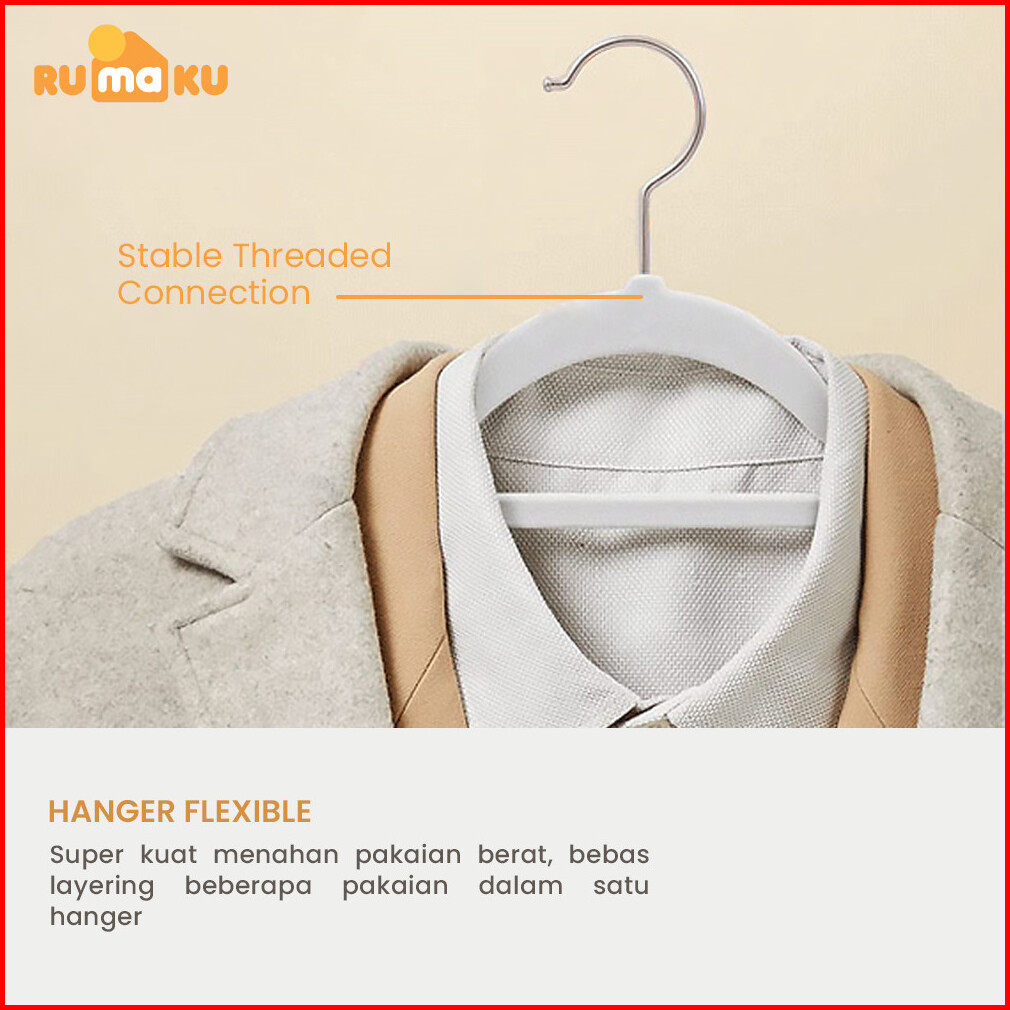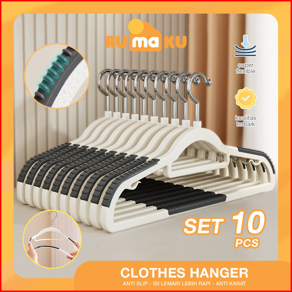 Rumaku Hanger 10 Pcs Gantungan Baju Plastik Kokoh Dengan Karet Anti Slip
