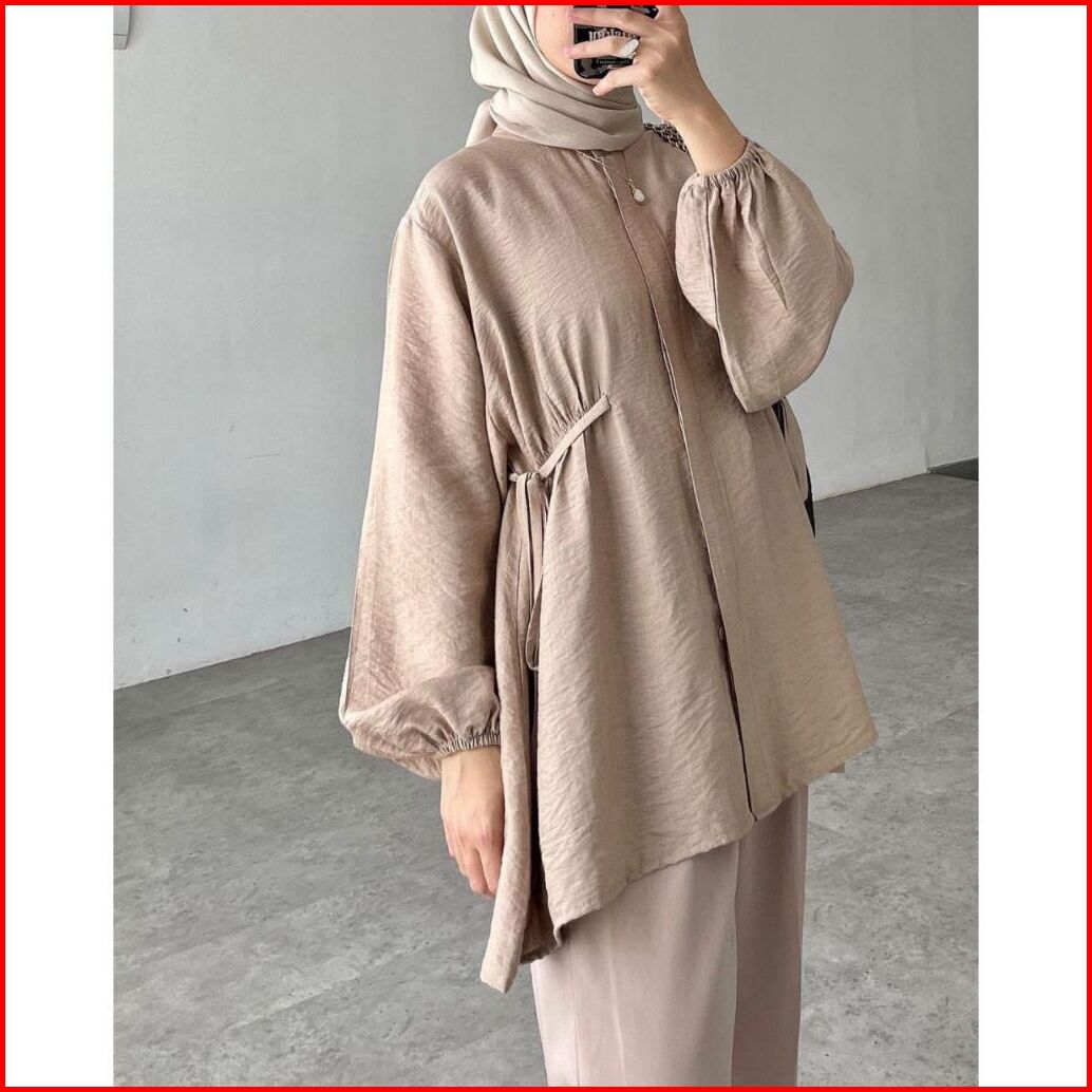 Alea Blouse Semi Tunik Polo Linen Premium Tali Samping Ld 110cm Dan Ld 125cm