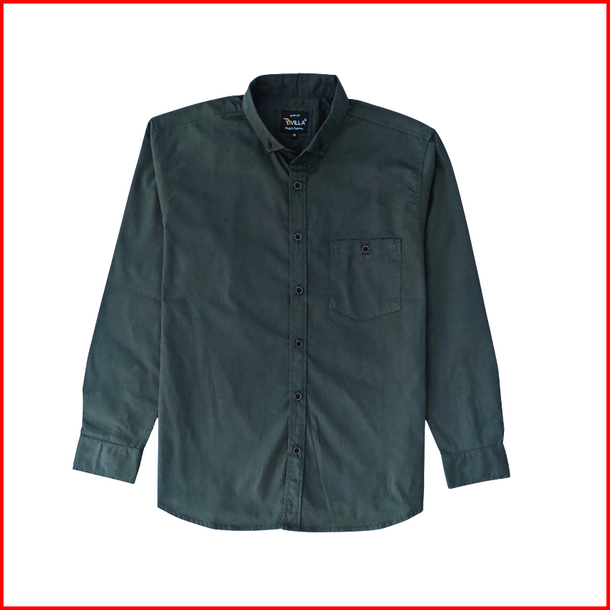 Kemeja Polos Pria Lengan Panjang Army Slim Fit