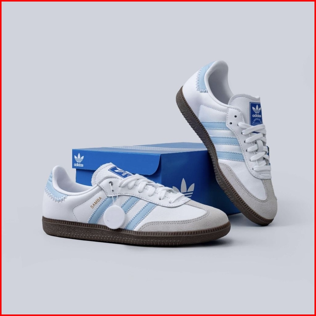 Terlaris Sepatu Samba White Blue Sky Sneakers Casual Samba Putih Biru