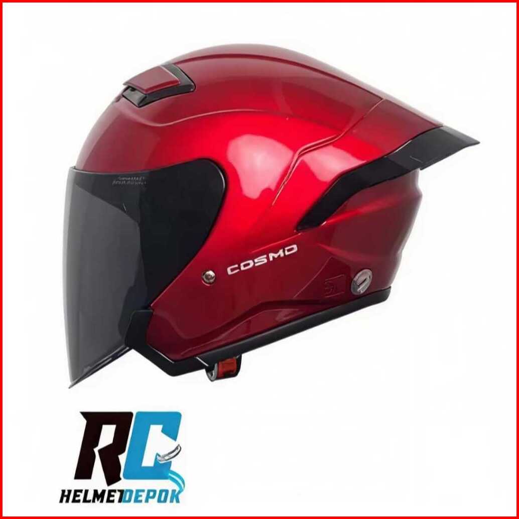 Helm Half Face Mla Cosmo Terbaru Marun Glosy Visor Hitam Free Spoiler Sni Helm Dewasa Pria Dan Wanita Paket Ganteng Free