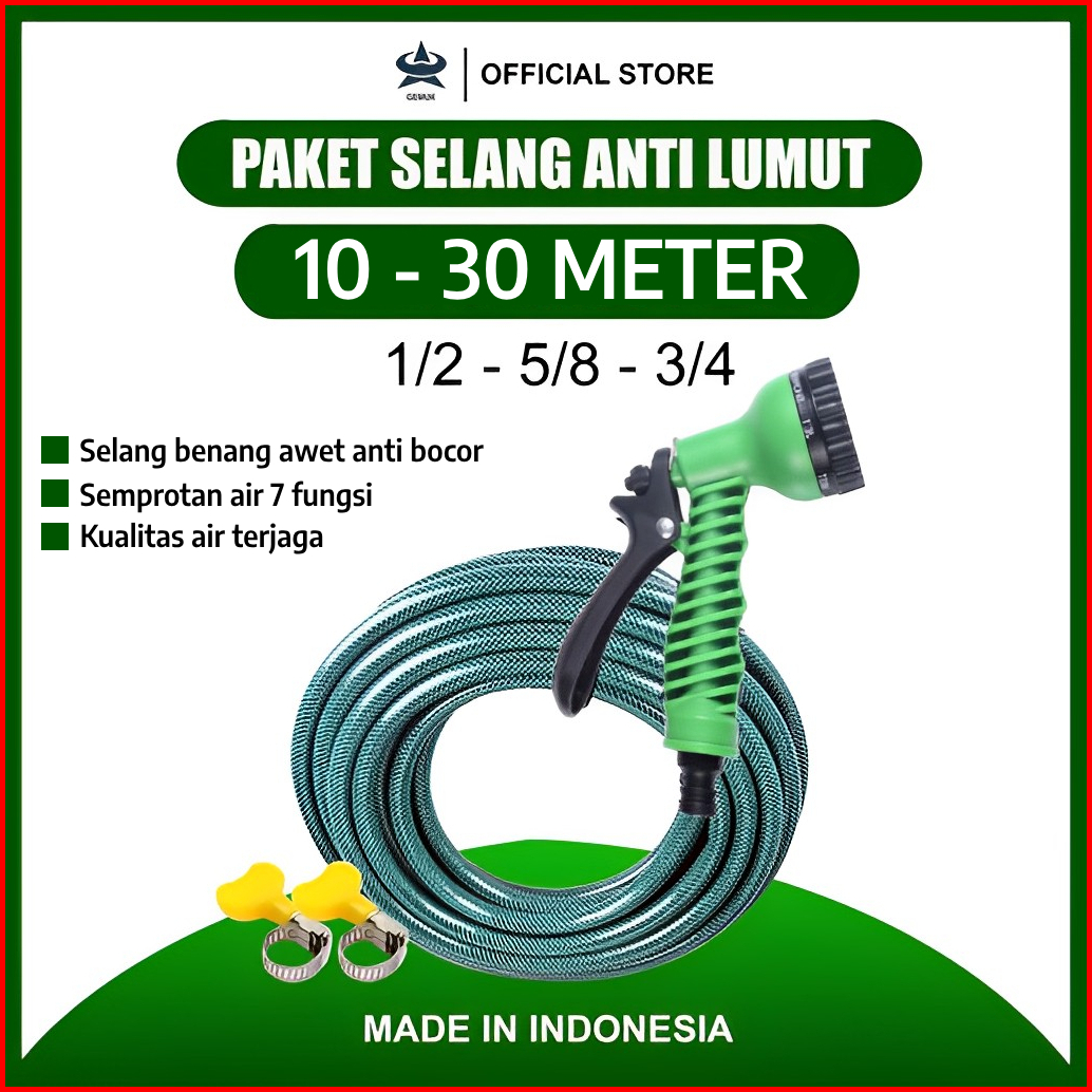 Gemuk Selang Air Cuci Motor 10 Meter - 30 Meter Dengan Semprotan Air 7 Mode Siram Selang Benang Anti Lumut Alat Siram Ta