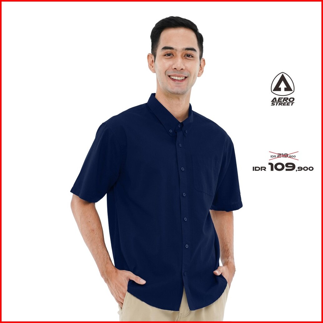 Aerostreet Kemeja Pendek Stand Collar Davin Navy Man Qb1aa