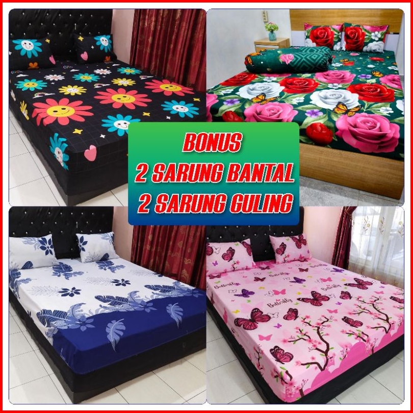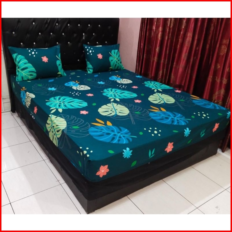 Sprei 180x200 160x200 Seprei Katun Motif Bunga Daun Set 2 Sarung Bantal Guling Tidur Seprai Kotak
